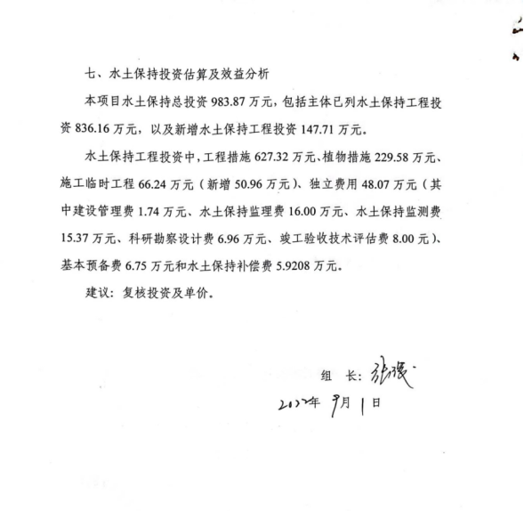 八、基本同意本项目水土保持总投资966.20万元,其中工程措施609.65万元、植物措施229.58万元、施工临时工程66.24万元(新增50.96万元)、独立费用48.07万元(其中建设管理费1.74万元、水土保持监理费16.00万元、水土保持监测费15.37万元、科研勘察设计费6.96万元、竣工验收技术评估费8.00元)、基本预备费6.75万元和水土保持补偿费5.9208万元。 根据川财综[2014]6号文件要求,该项目属于学校公益性工程建设项目类,免征水土保持补偿费5.9208万元。