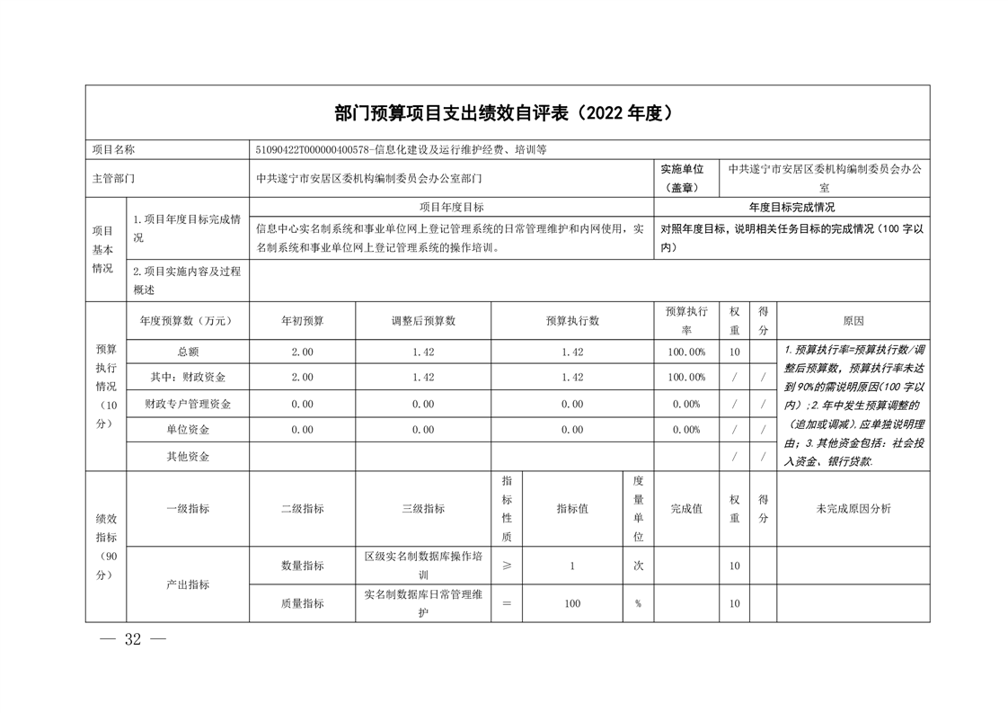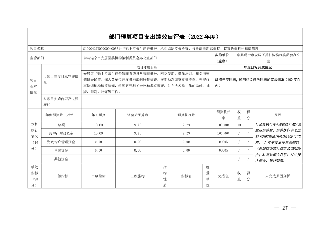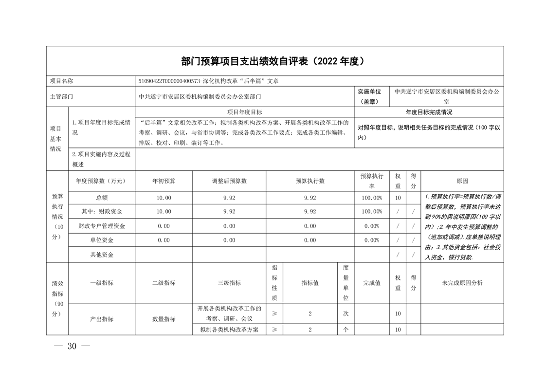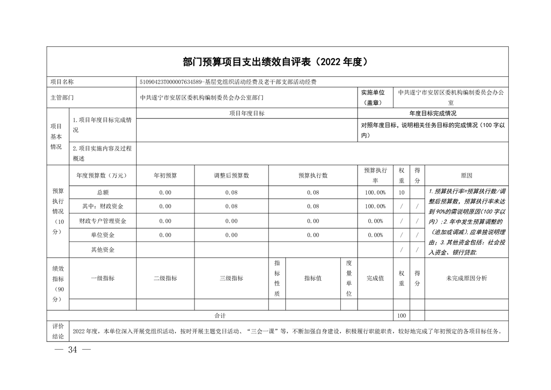 2022年度中共遂宁市安居区委机构编制委员会办公室决算公开