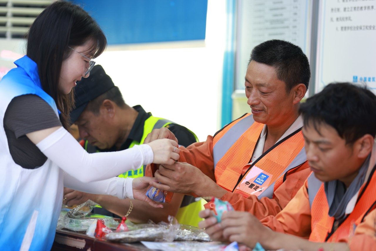 活动由区总工会、共青团安居区委、中建八局成达万高铁项目工会联合开展,为200余名奋战在施工一线的工友送上节日祝福与暖心关怀。