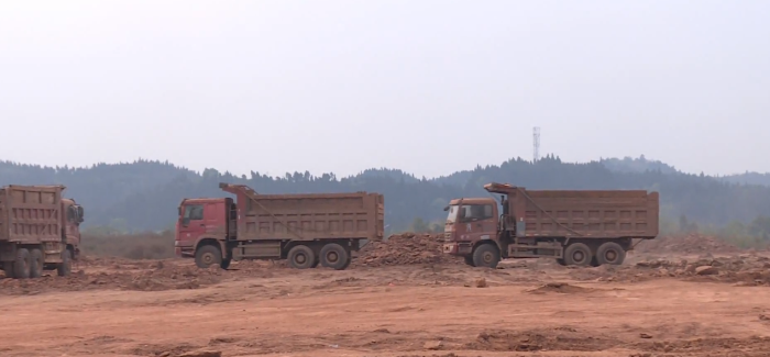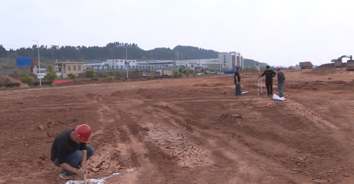 四川裕能一期项目建设现场,工作人员正在进行测量和放线,与此同时挖掘机也正在进行200亩地的场地平整工作,这两项工作预计在一个月左右的时间可以全部完成。