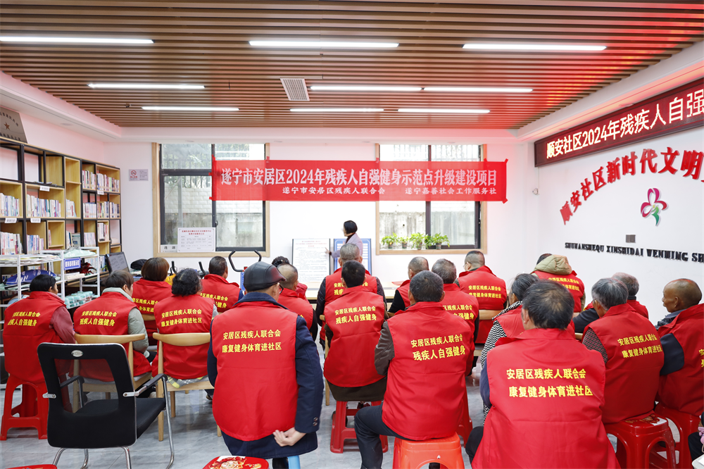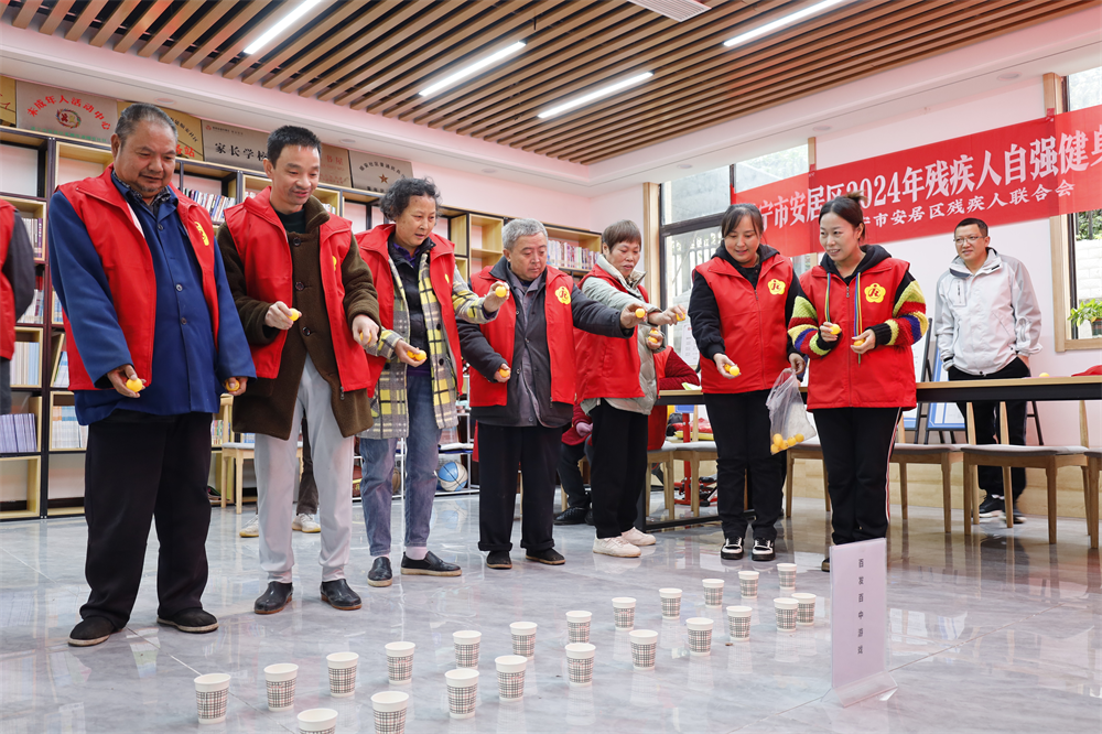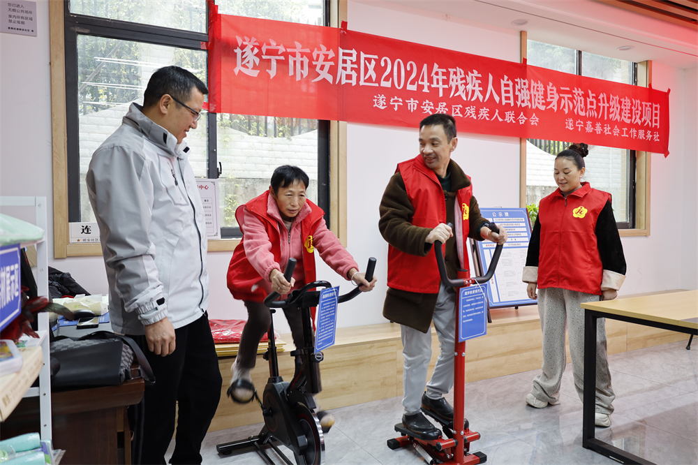 今年以来,安居区坚持以“残健融合、文化共享、提振信心”为工作目标,不断厚植“情暖心安”工作品牌底色,通过残疾人自强健身示范点建设,构建更高水平的全民健身公共服务体系,让残疾群众享受到全民健身成果,不仅能增强他们的身体素质、激发生活热情,还能宣传、引导、带动大家积极参与体育健身活动,全面增强残疾群众的幸福感、获得感、认同感。