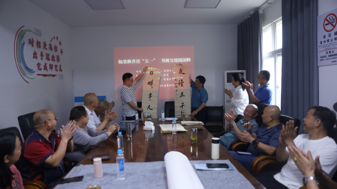 为进一步促进安居区、船山区两地的文化交流,共同推动书法艺术事业的发展。4月21日,以“翰墨飘香迎‘五一’·书画交流扬国粹”为主题的书画交流活动在聚贤镇宣传文化中心举行。两地书画家们齐聚于此,以交流笔会为载体,共赴一场艺术与文化的春日之约。