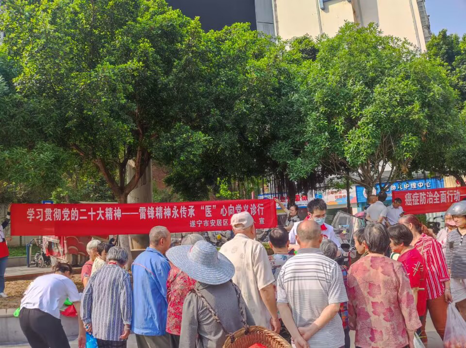 遂宁市安居区人民医院内科一党支部深入学习贯彻党的二十大精神,通过义诊活动,充分发挥专科优势,以实际行动做好肿瘤防治宣传工作,为人民群众生命健康保驾护航。
