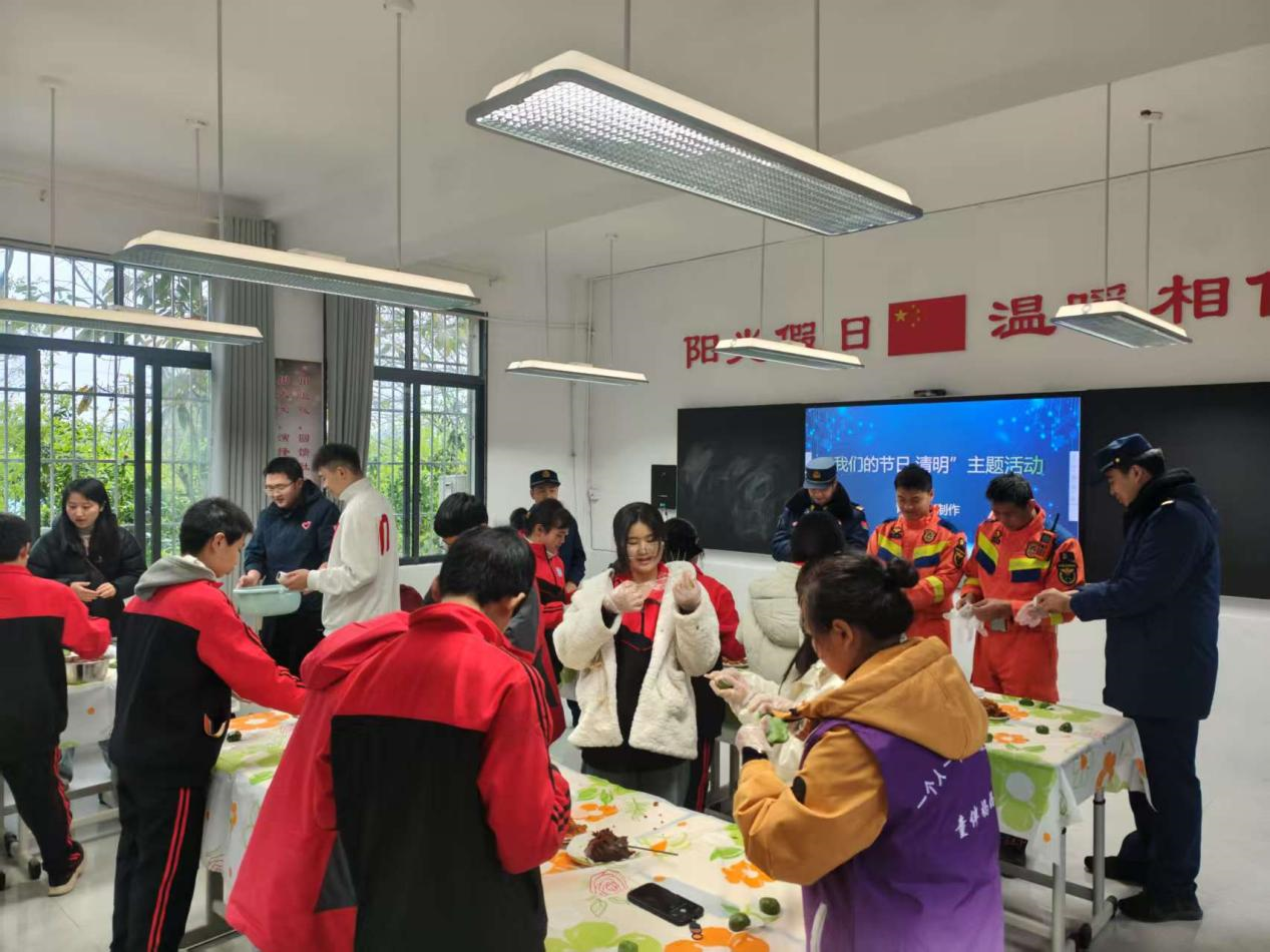 活动通过名人励志讲座传递奋斗精神,消防战士用亲身经历展现责任与勇气,为留守儿童注入信心与力量;现场制作了青团,让孩子们感受到家一般的温暖与关怀。当天,还为西眉中学授牌留守儿童周末乐园“枢纽型童伴之家”。
