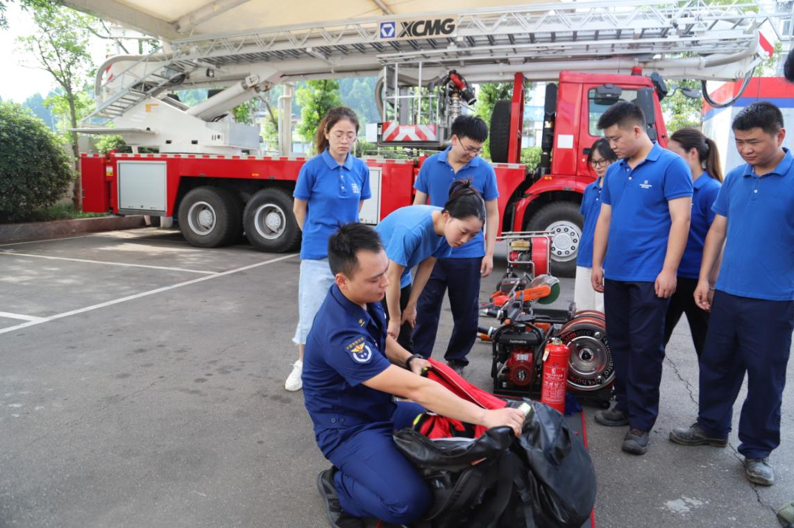在参观学习过程中,消防指战员带领企业职工参观了各类消防车辆和器材装备,详细讲解了基本的消防安全常识和灭火知识,并现场演示了灭火战斗服、空气呼吸器佩戴等内容。企业职工还登上消防车零距离体验指战员的日常工作,进一步加深对抢险救援工作的了解。