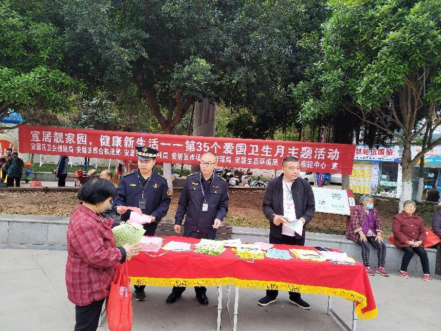 为深入贯彻落实“健康中国”战略,推进安居区健康区建设,4月7日,区卫生健康局联合区综合执法局、农业农村局、市场监督局、安居生态环境局、区疾控中心,柔刚社区卫生服务中心、凤凰社区卫生服务中心在安居区头陀寺广场开展了以“宜居靓家园 健康新生活”为主题的爱国卫生月宣传活动暨以“优质资源下沉,人人享有健康”为主题的世界卫生日宣传活动。