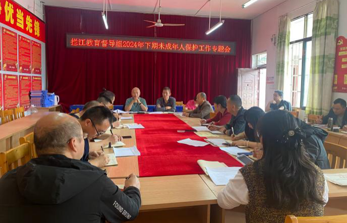 近日,拦江教育督导组在拦江九义校黄桷楼三楼的会议室召开了2024年下期未成年人保护工作专题会。全体责任督学和未保工作负责人参加了此次会议。