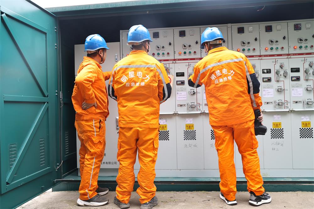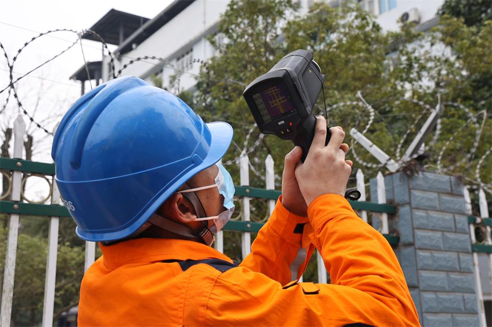 瞧......身穿专属印有明星电力橙色服装,头戴蓝色头盔的电力人,先后来到安居区凤凰文化中心、鑫宇自来水厂有限公司等地,他们正用专业工具对内部的高压、低压配电室以及户外箱柜的设备进行排检。