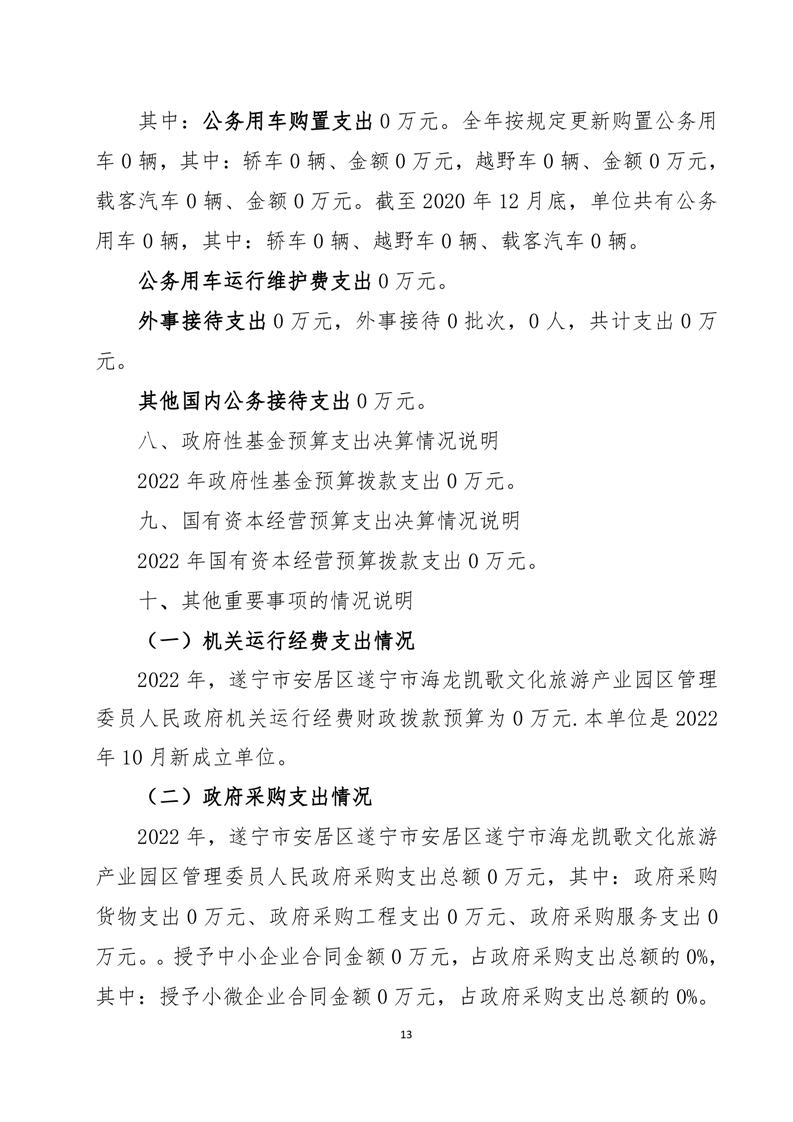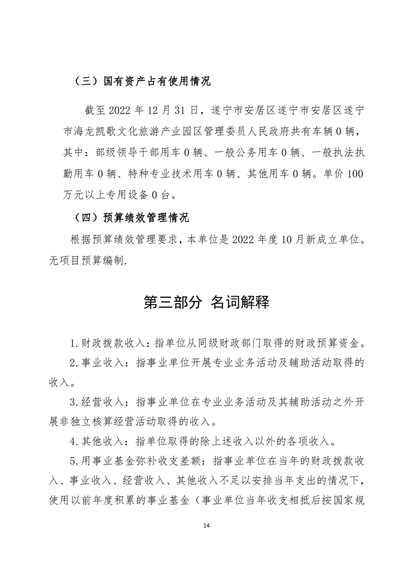 2022年度遂宁市安居区海龙凯歌文化旅游产业园区管理委员会 部门决算
