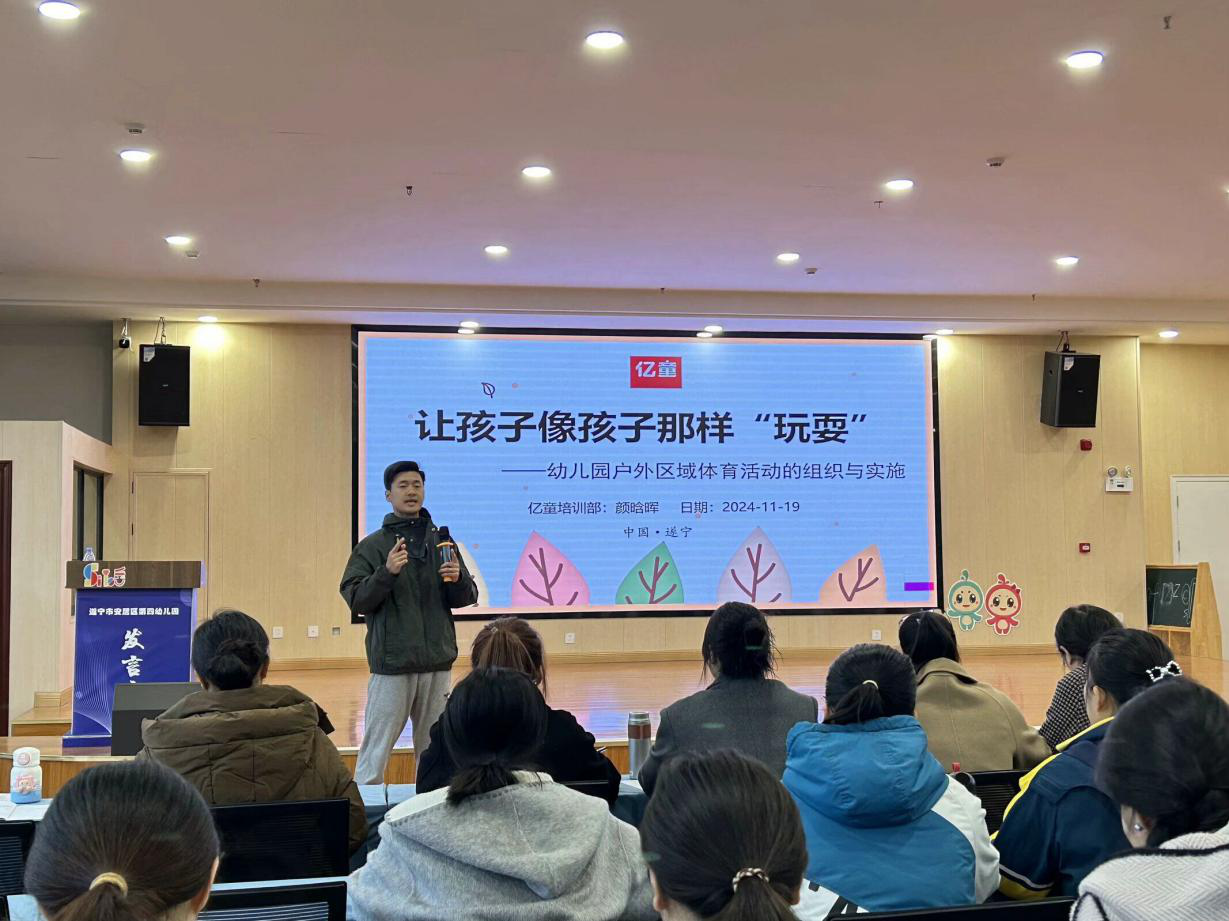 为了提升教师对户外区域体育活动的组织与指导能力,更好地引导幼儿开展户外区域体育活动,近日,安居四幼邀请儿童培训专家颜晗晖对全体老师进行了专题培训。