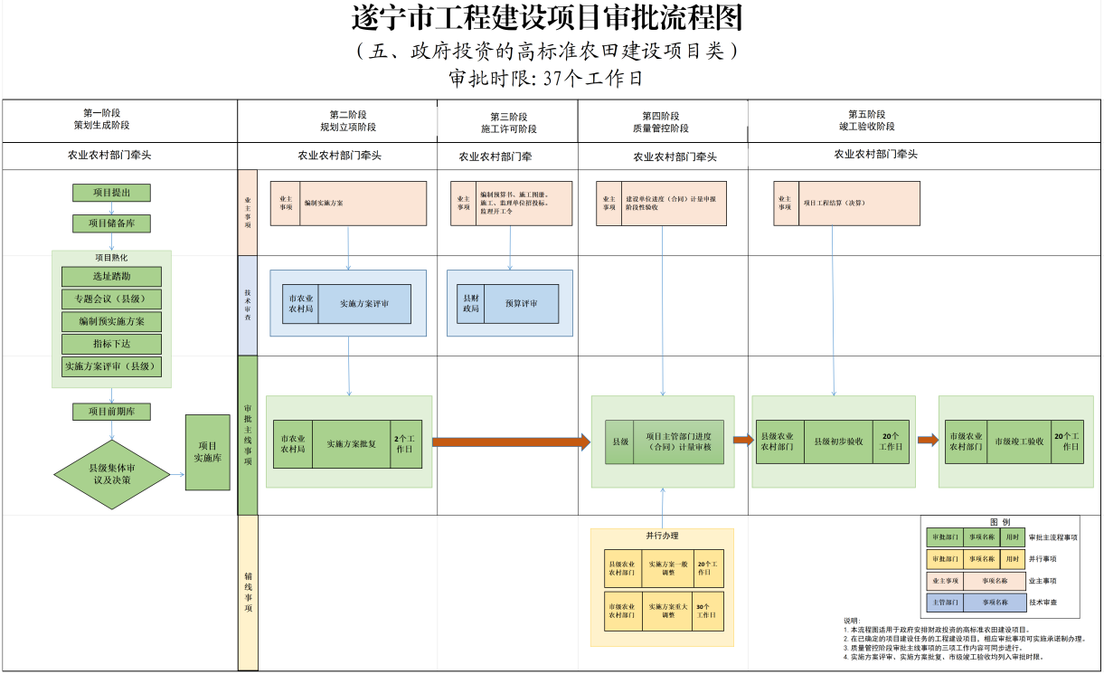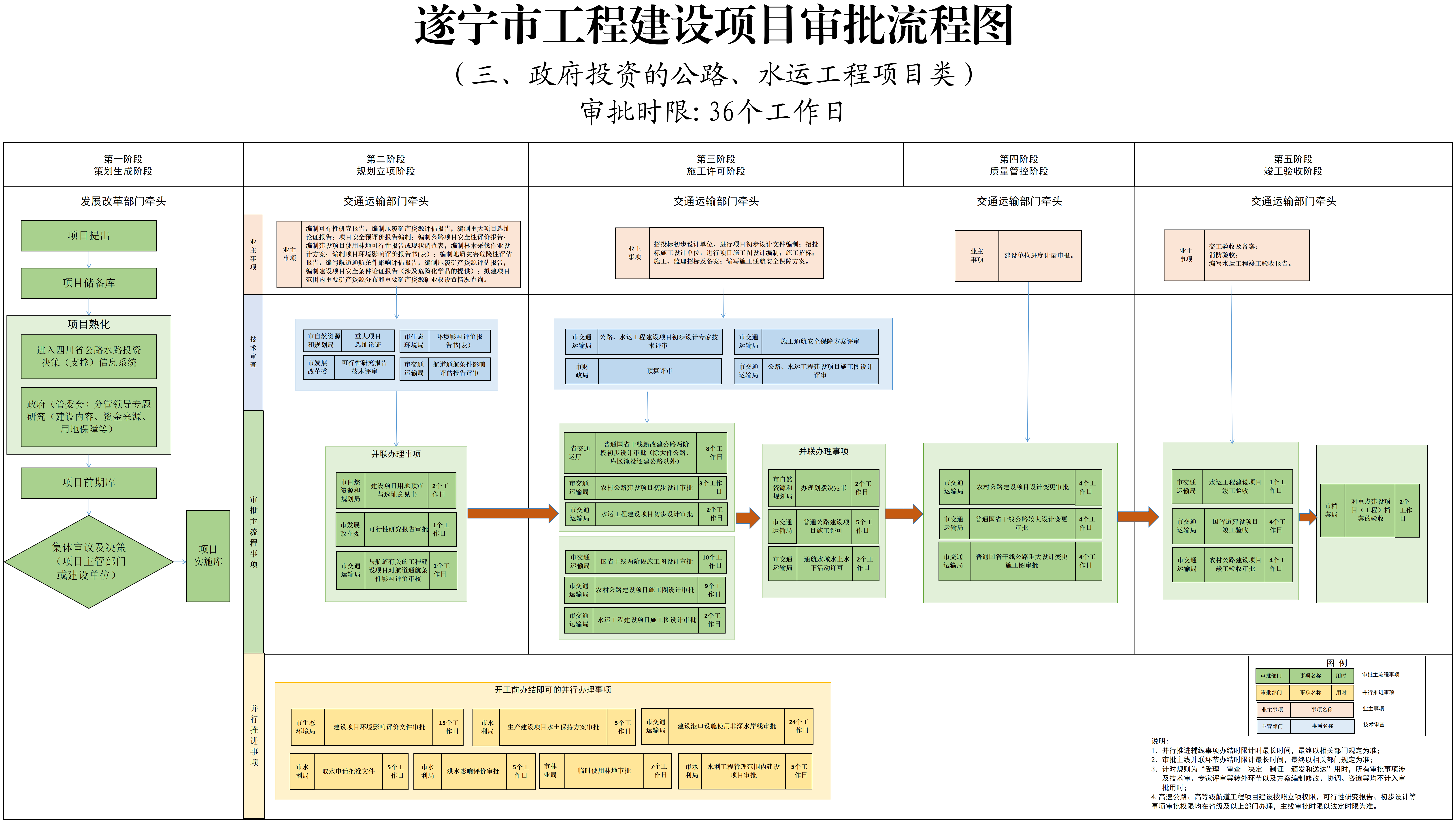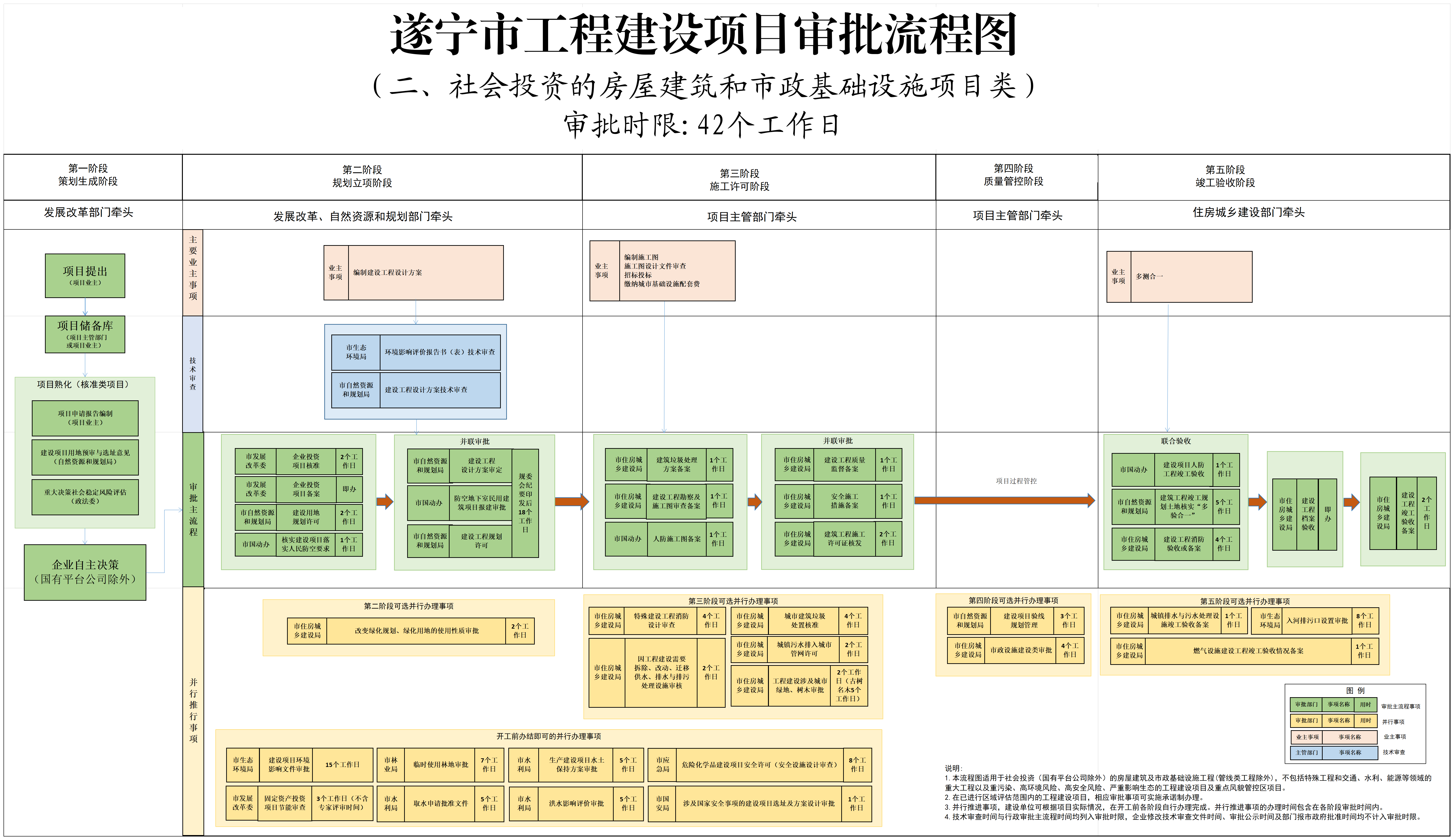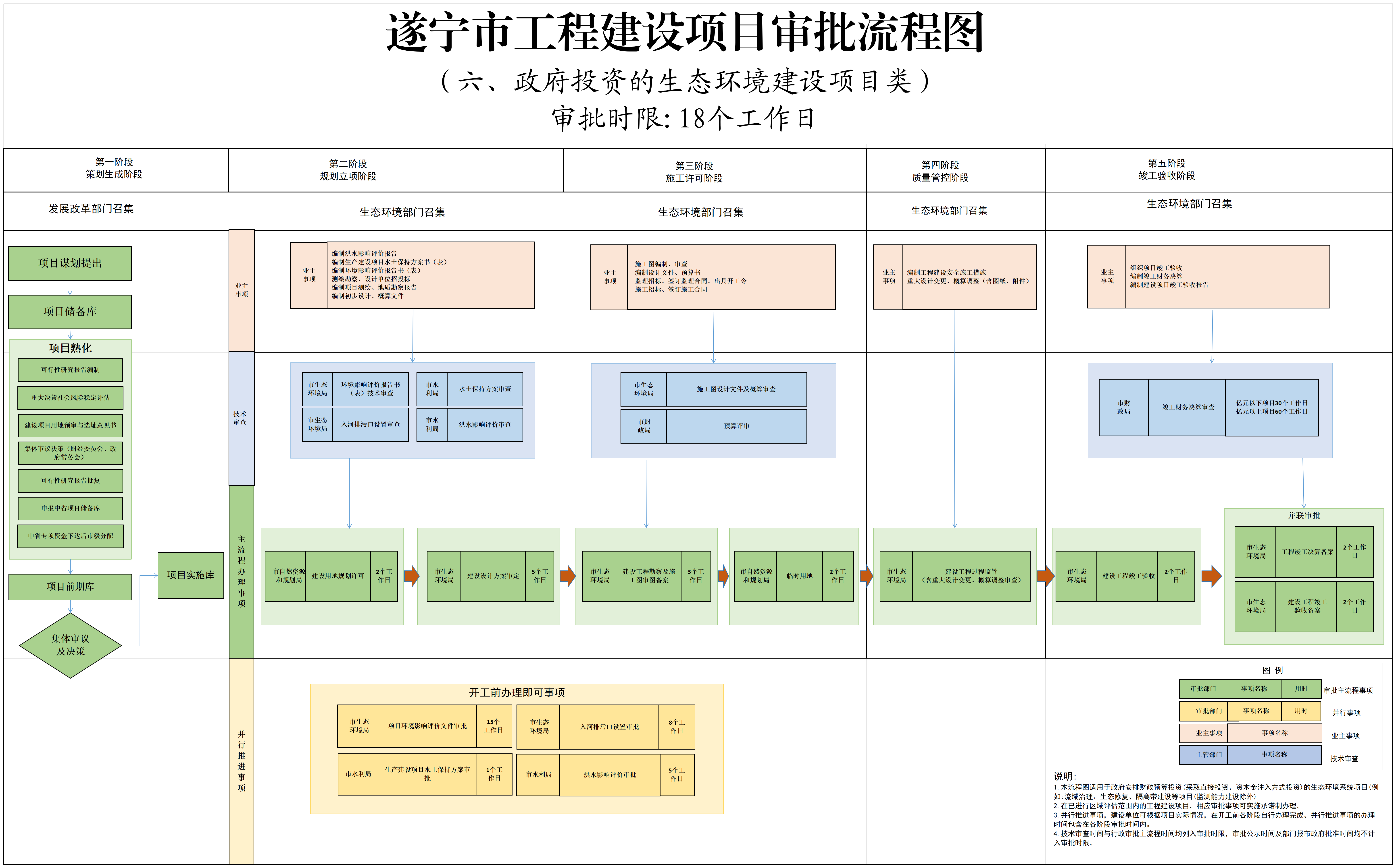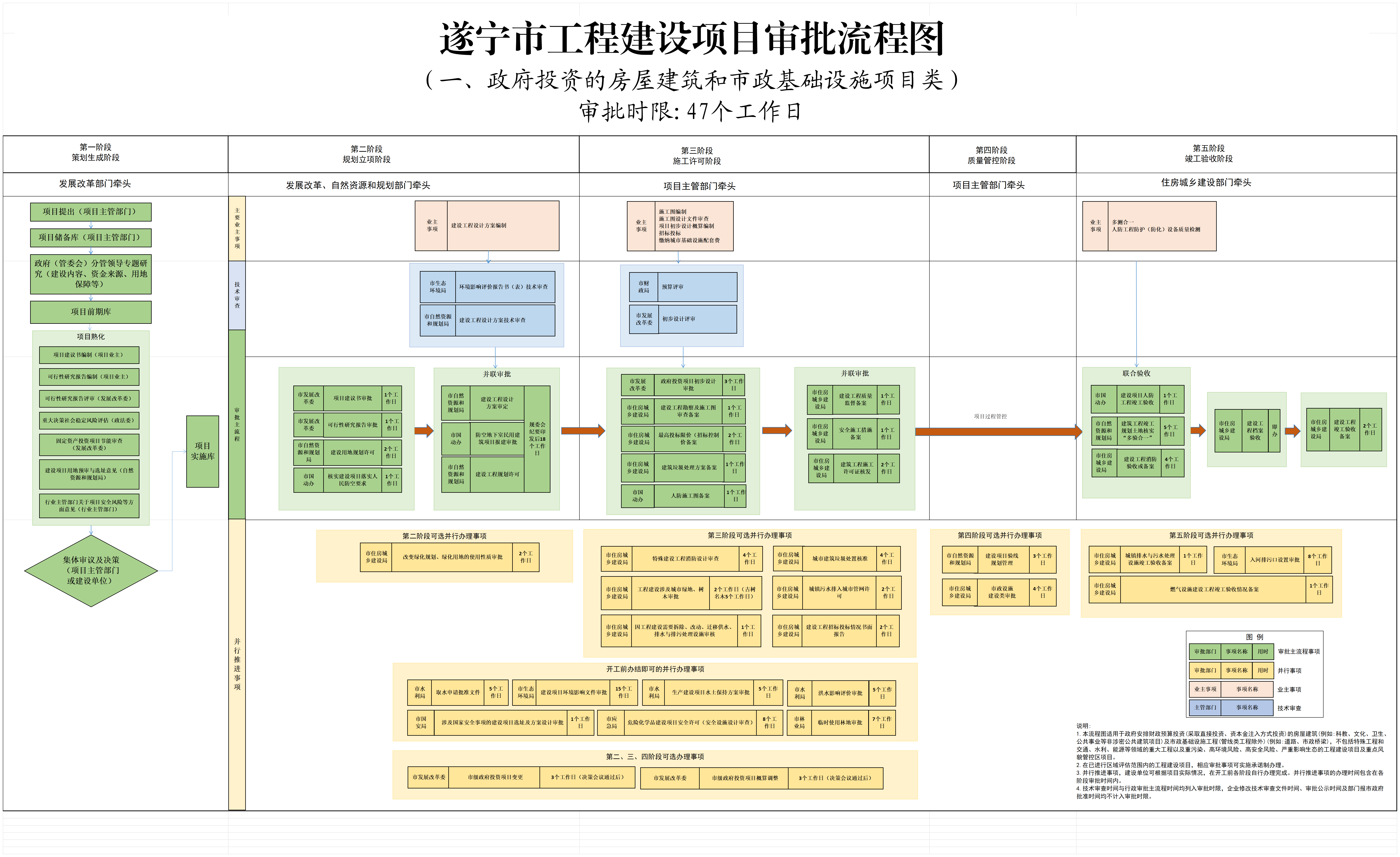 为深化我市项目建设全过程效率革命,规范工程建设项目审批事项,根据《中共遂宁市委办公室 遂宁市人民政府办公室关于开展项目建设全过程效率革命的通知》(遂委办发〔2024〕56号)精神,相关行业主管部门按照房屋市政、交通、水利、农业、环保、技改等六大项目类型,梳理形成《遂宁市项目审批服务事项效率清单》《遂宁市工程建设项目审批流程图》,经市政府同意,现随文印发给你们。