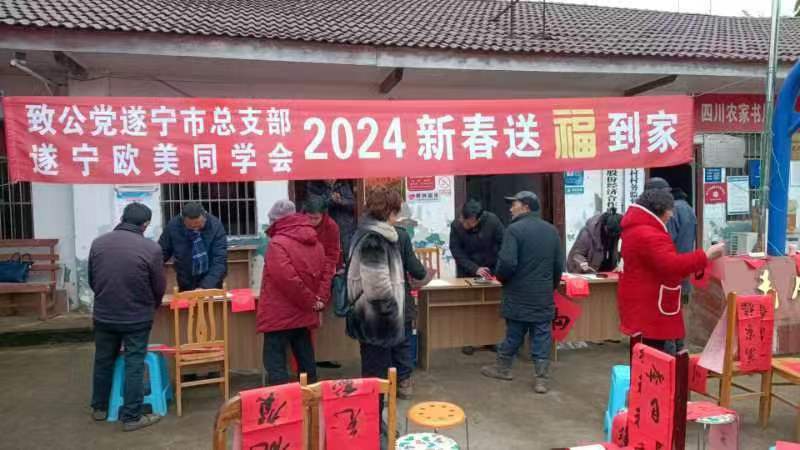 2024年1月25日上午,中国致公党遂宁市总支部委员会、遂宁欧美同学会、遂宁市安居区侨台办、遂宁市安居区归侨侨眷联合会等部门联合常理镇卫生院在常理镇双古井村开展新春送“福”下乡义诊活动,为双古井村村民书写春联与“福”字。
