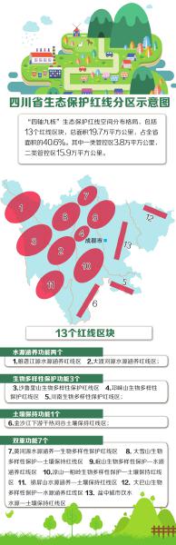 10月8日,四川省政府发布《四川省生态保护红线实施意见》(下简称《实施意见》),明确了“四轴九核”生态保护红线空间分布格局,包括13个红线区块,总面积19.7万平方公里,占全省面积的40.6%。