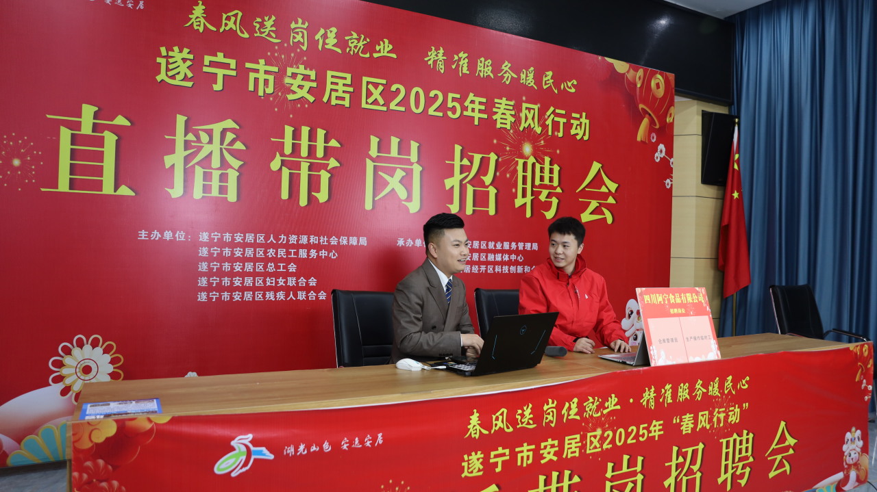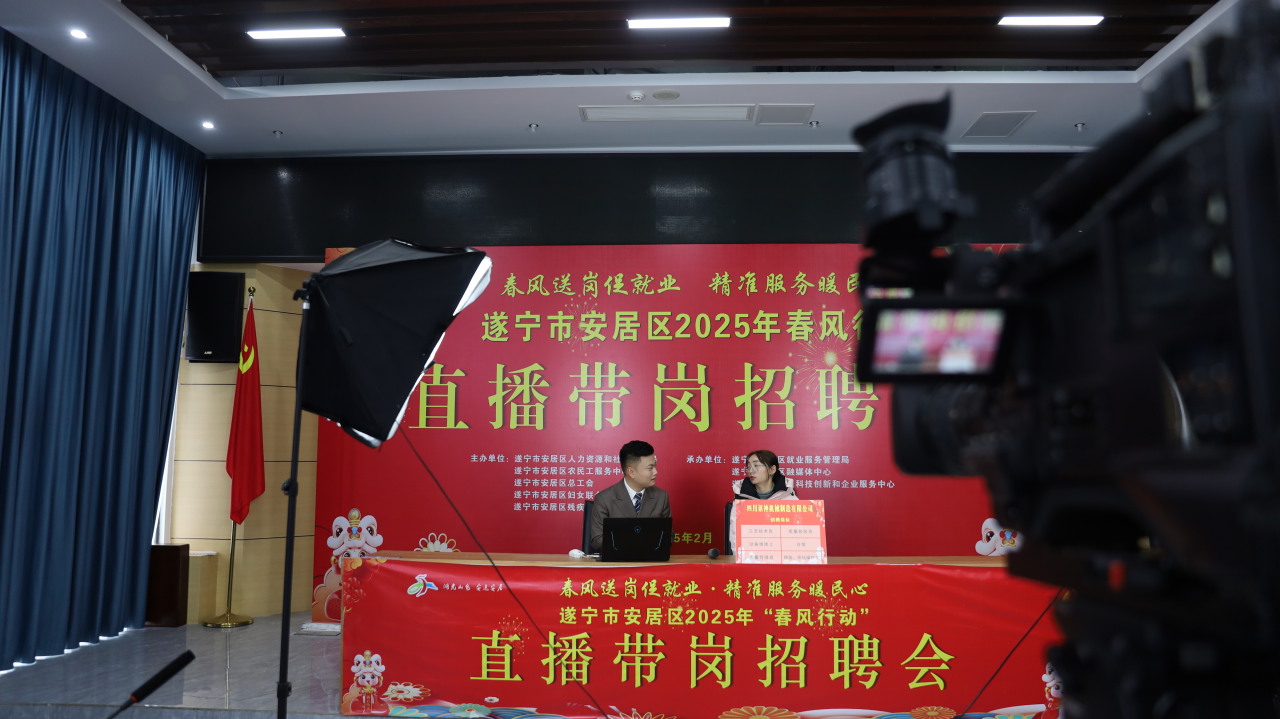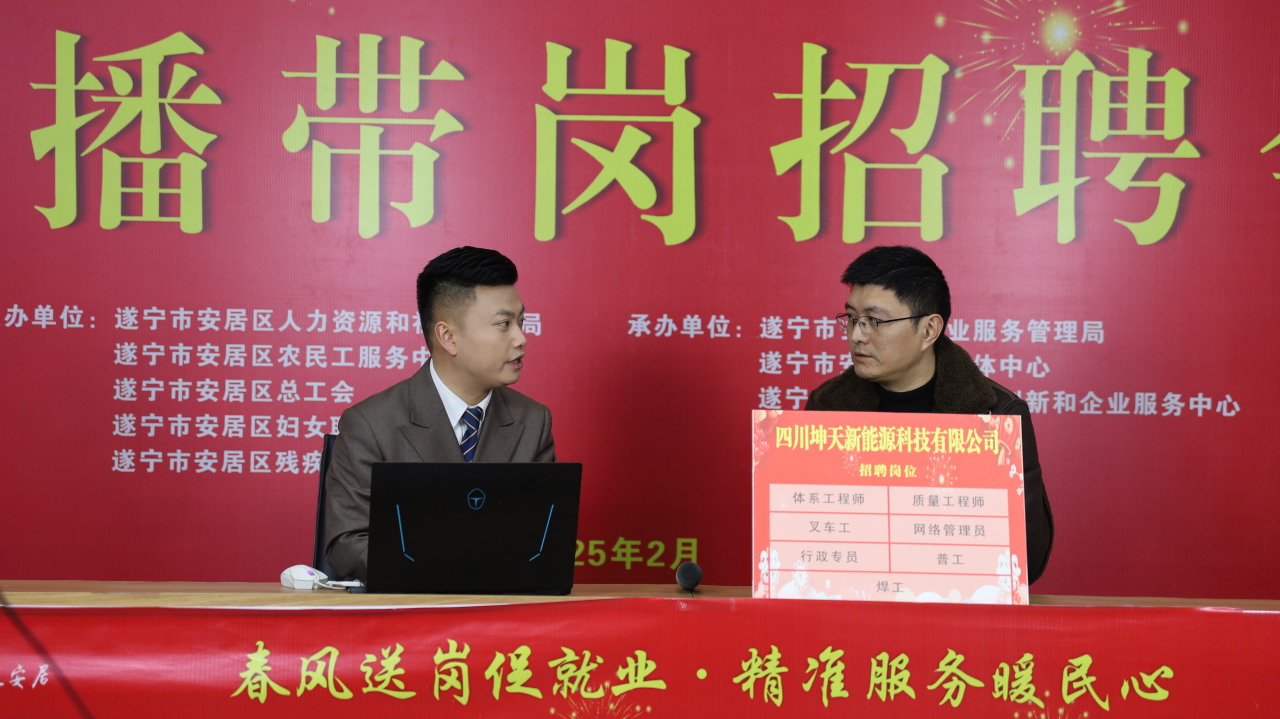 2月18日下午,安居区举行2025年“春风行动”直播带岗招聘会,带求职者“云端”找工作,吸引了众多网友留言“求联系方式”。