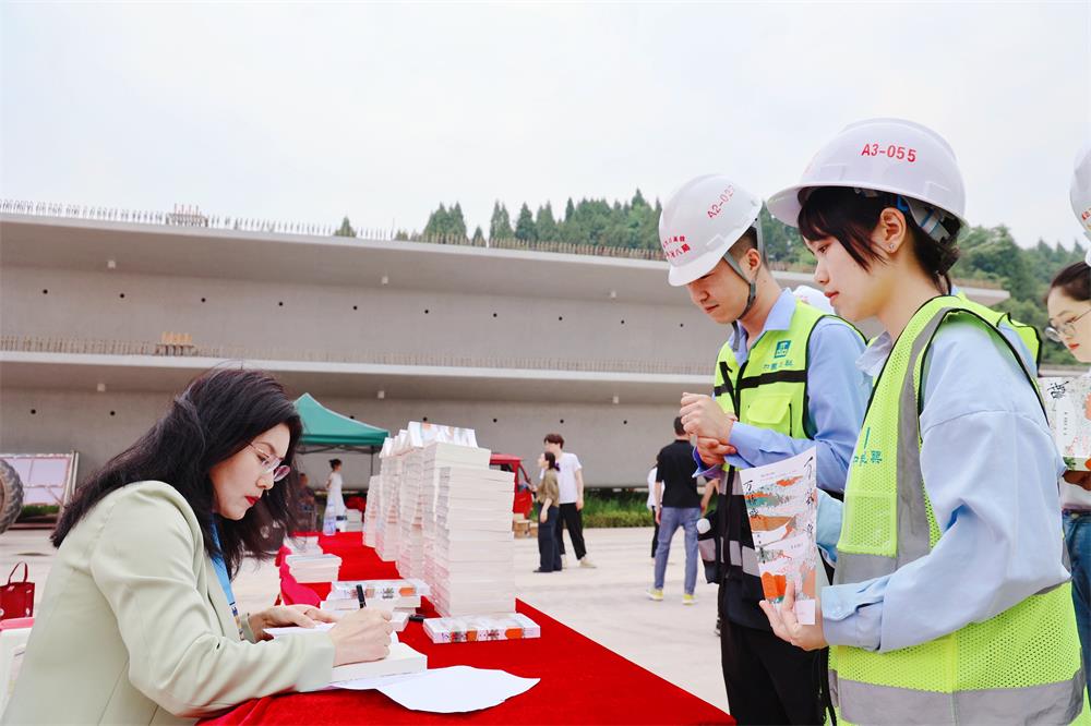 “今天在参观成达万高速铁路工程项目现场时,我感到十分震撼与激动,如同创作《万桥赋》时曾被桥梁建设者们所触动一样。希望通过这次参观带来的体验能为下一部作品带来更多的灵感。”作者宋潇凌这样说道。当天,除新书分享外,现场还举行了“书香天府·四川文艺悦读角”捐赠仪式,为建设一线增添“心动力”。