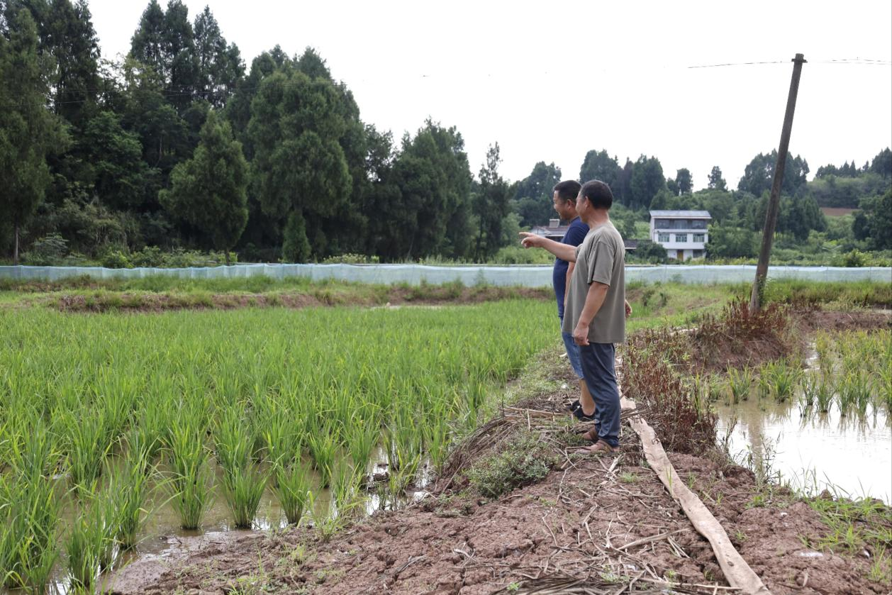7月10日,在分水镇苏家河村,一股清泉沿着管道,汩汩流入种植户何德余的水稻田里,这给忙碌的他解决了不小的难题。