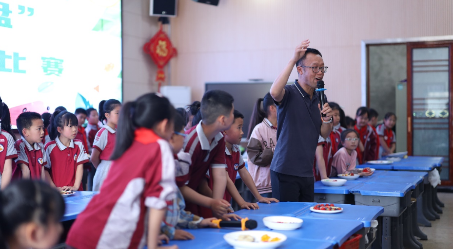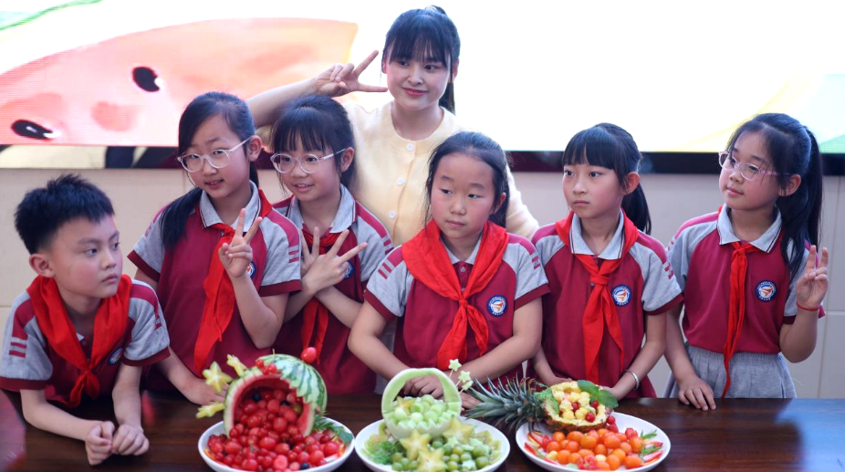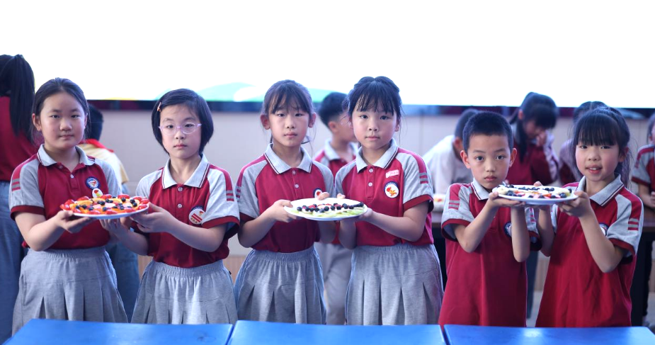 在劳动技能竞赛环节,三、四年级的学生们大显身手,动手制作了各式各样的水果拼盘。