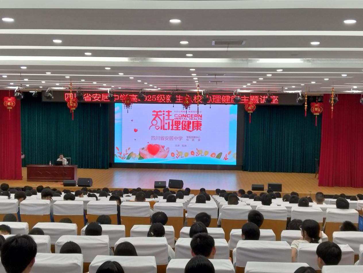 近日,安居中学举办了以“心向阳光 快乐启航”为主题的高中新生入校心理健康专题讲座。本次讲座由学校专职心理教师伍洲主讲,帮助新生更好地适应新环境、新学段的学习和生活,树立积极心态,提升心理调适能力。