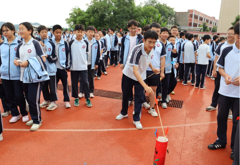 个人项目同样亮点频出。“投壶雅趣场”前,参与者屏气凝神,瞄准壶口精准投掷,重现古人雅乐之趣;“套五毒”区域,套圈在空中划出优美抛物线,套中目标的瞬间,欢呼声此起彼伏;“诗词飞花令”环节更是将现场氛围推向高潮,同学们才思敏捷,对端午诗词信手拈来,展现出深厚的文学素养。此外,五彩绳编织、谜语猜猜、端午知识竞答等活动也吸引了大批学生踊跃参与,校园内处处洋溢着欢声笑语,传统文化在这一片热闹中焕发出勃勃生机。