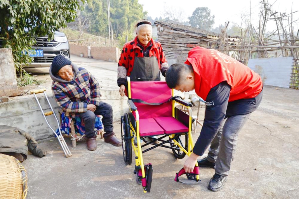 “感谢,今天安居区残联的工作人员上门为我母亲送轮椅,以后带她出门散步都很方便了。”拦江镇檬子垭村残疾群众蒋家清女儿罗彬蓉说。