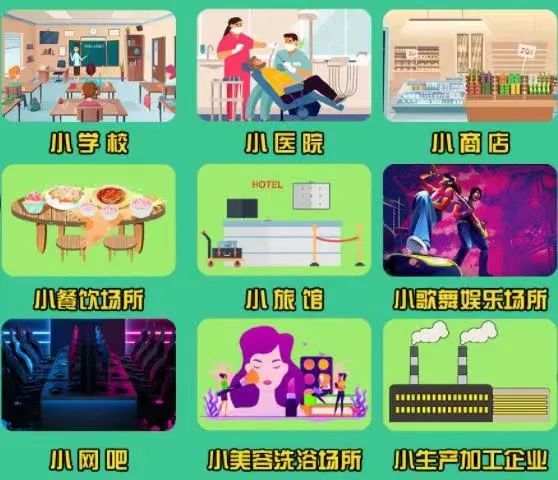 6、医疗场所:乡镇卫生院,街道卫生院,社区卫生院以及床位数30张以下的其他小医院(诊所)、疗养院、养老院、福利院;