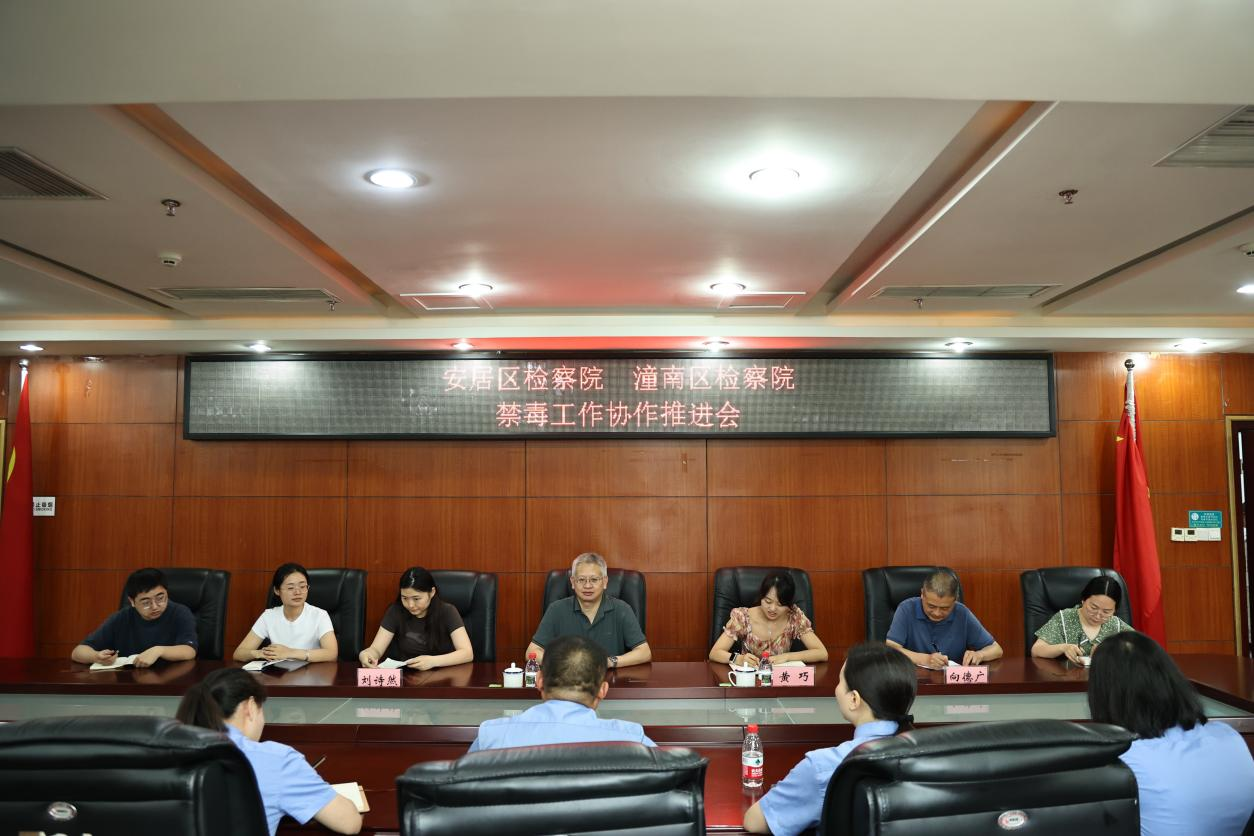 庭审结束后,两地检察院召开禁毒工作协作推进会,就此类毒品案件的争议焦点、公诉策略及法律监督难点展开研讨。潼南区检察院分享了在此类案件办理中的经验做法,安居区检察院干警则结合观摩体会,交流了提升出庭质效的思路。