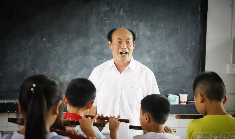 杨远华,今年74岁,爱好文艺,在2016年成立了木元艺术团,2003年从三家镇农业工作岗位上退休。退休后,他带着艺术团里的团员定期去到三家小学,开展笛子、书法、象棋等特色特色辅教,培养学生的兴趣爱好。“反正闲着也是闲着,不如发挥余热,让我们三家镇的娃娃爱上民族乐器,让他们像城市里娃娃一样的快乐成长。”