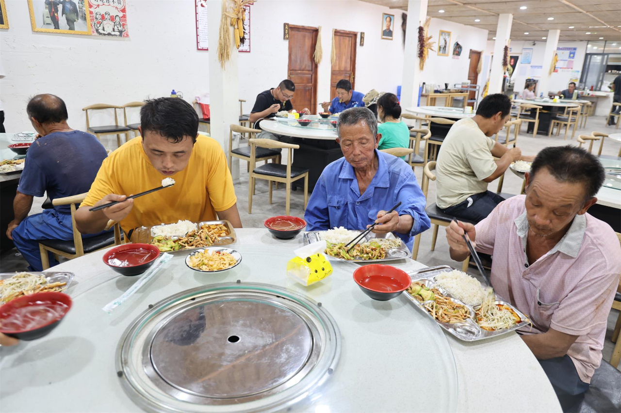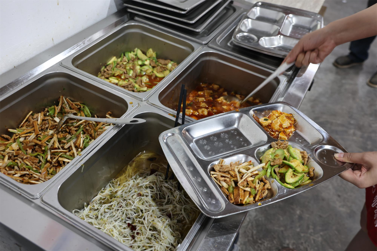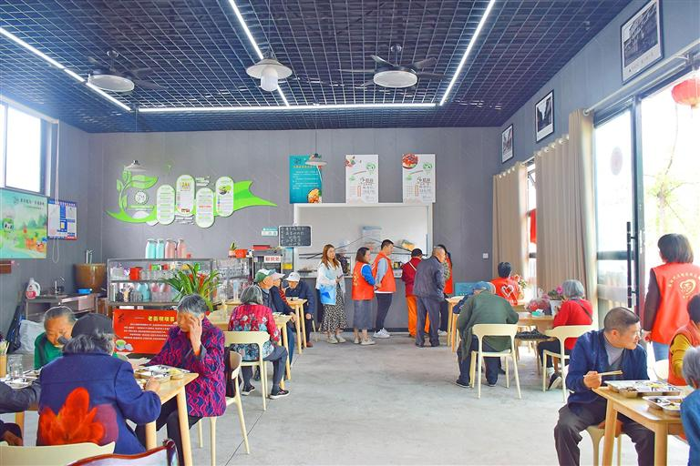 不一会儿,陆续有老年人前来就餐。“家里没人做饭,到了饭点,我们走几步就可以到社区食堂吃饭。这里菜品很丰富,价格也实惠,咸淡也适合老年人,我们很满意!”94岁高龄的居民简荣生和老伴在社区志愿者的帮助下成功刷脸支付,吃上了荤素搭配合理、营养健康的饭菜。