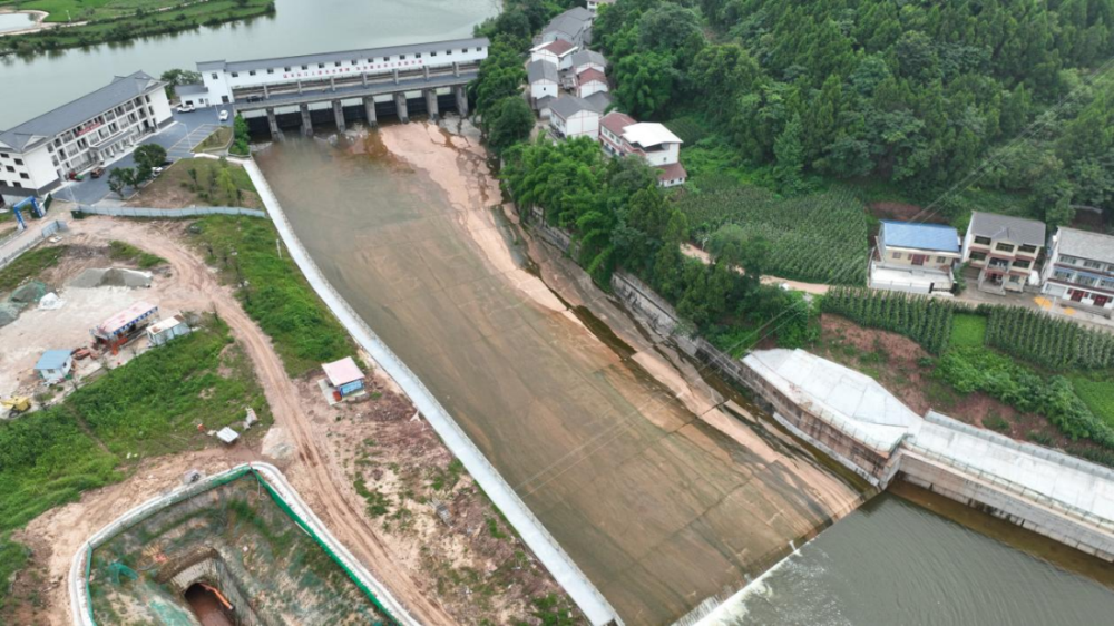 7月17日,在安居区东禅镇跑马滩水库除险加固工程施工现场,工人们正有序进行放水闸室闸门更换、护栏安装以及管理房装饰装修等作业,目前该工程主体已基本完工进入扫尾阶段。