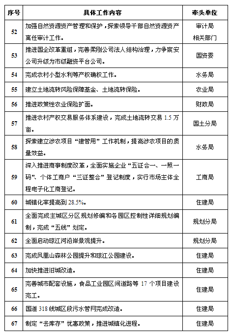 2017年《政府工作报告》已经区四届人大二次会议审议通过。为认真抓好落实,确保各项目标任务顺利完成,现将《2017年〈政府工作报告〉主要工作任务分解》印发给你们。各单位要根据分工安排,制定有效的实施方案,明确时间节点,落实工作责任,细化保障措施,确保各项工作扎实稳步推进。