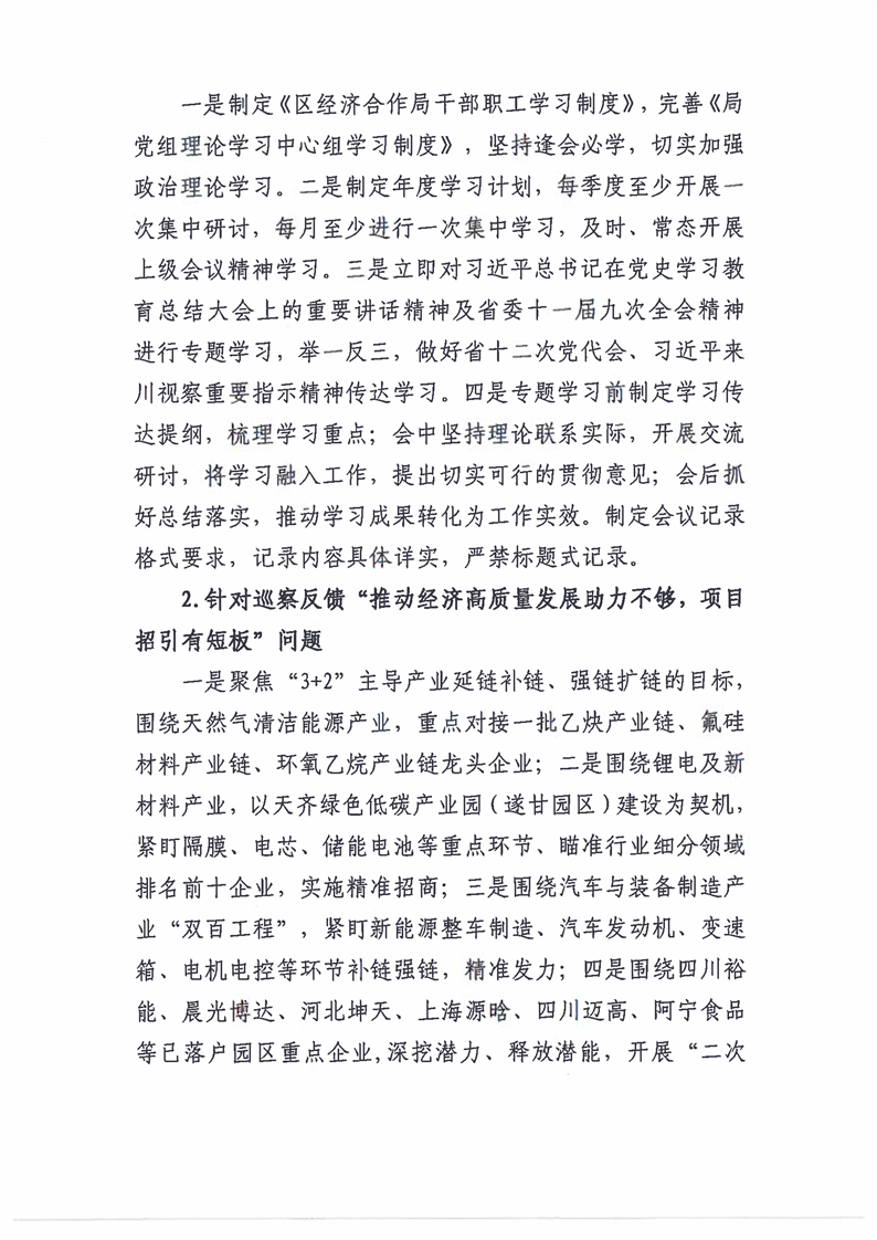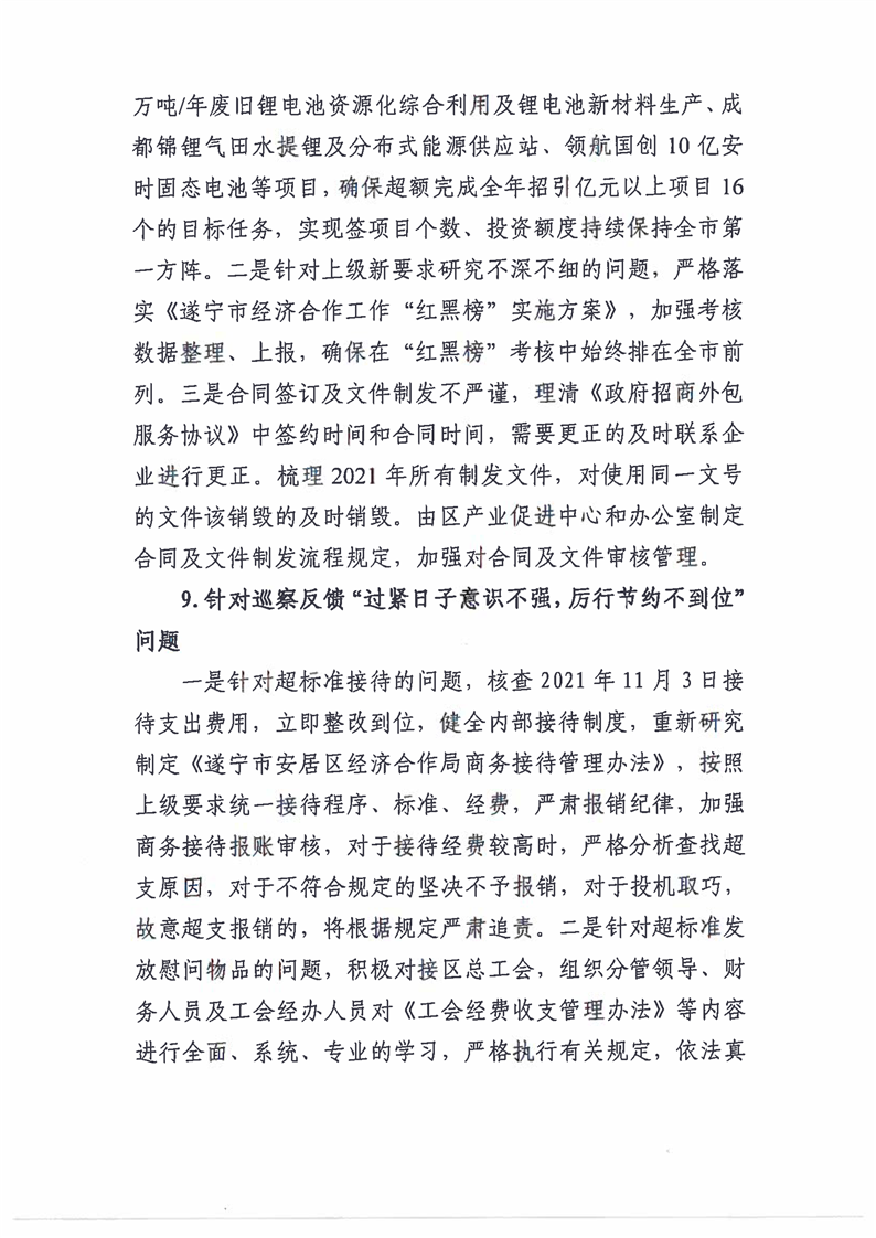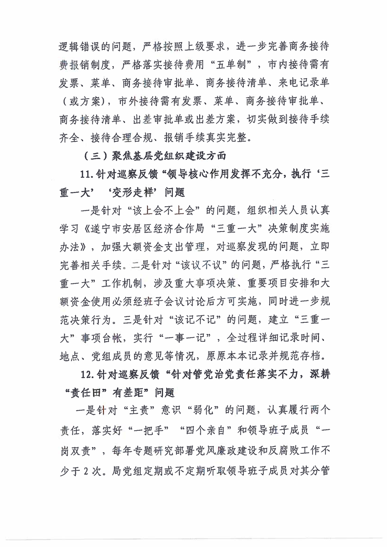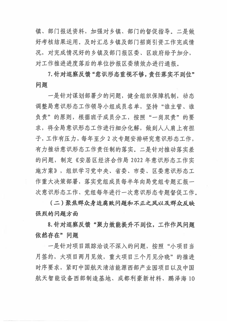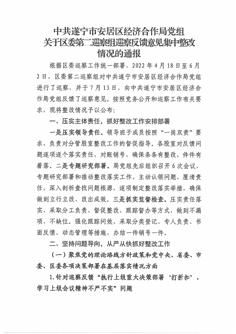 中共遂宁市安居区经济合作局党组关于区委第二巡察组巡察反馈意见集中整改的情况通报