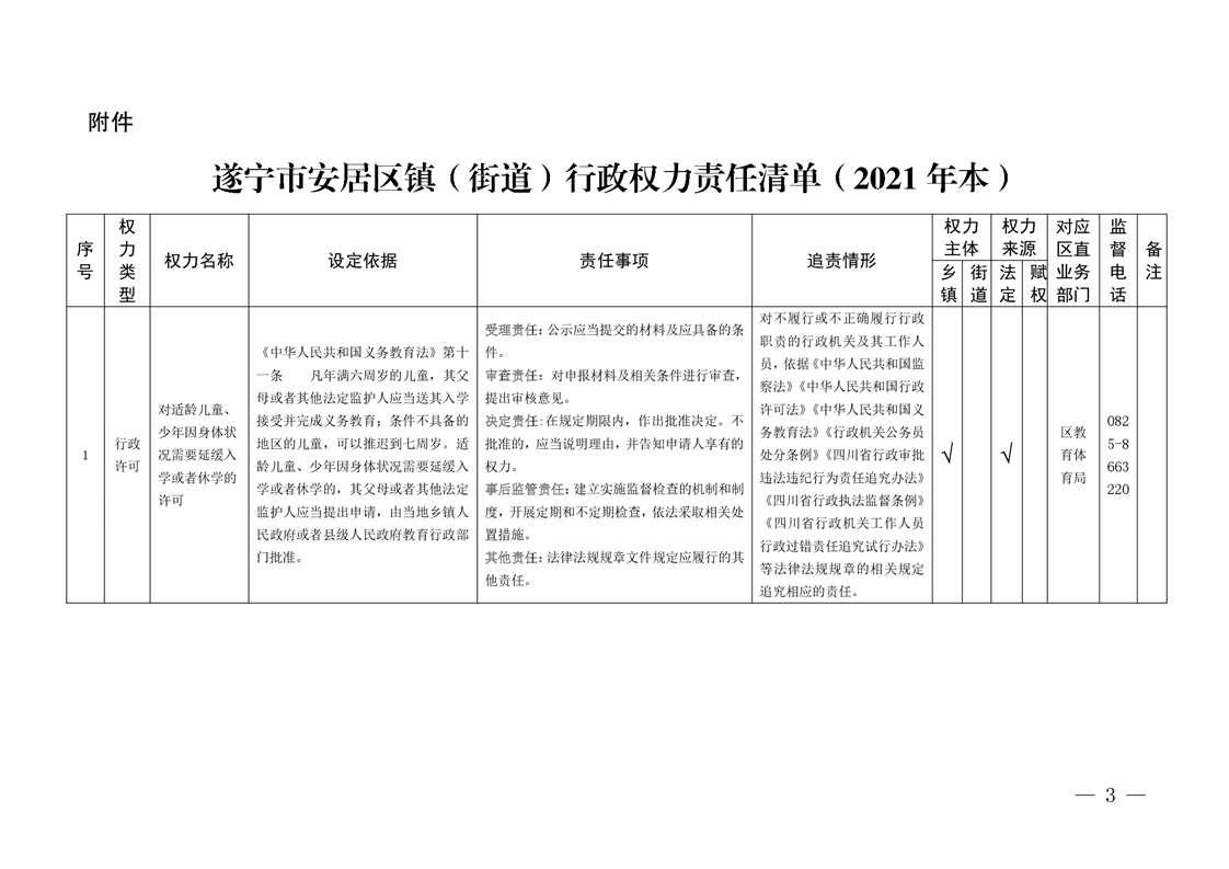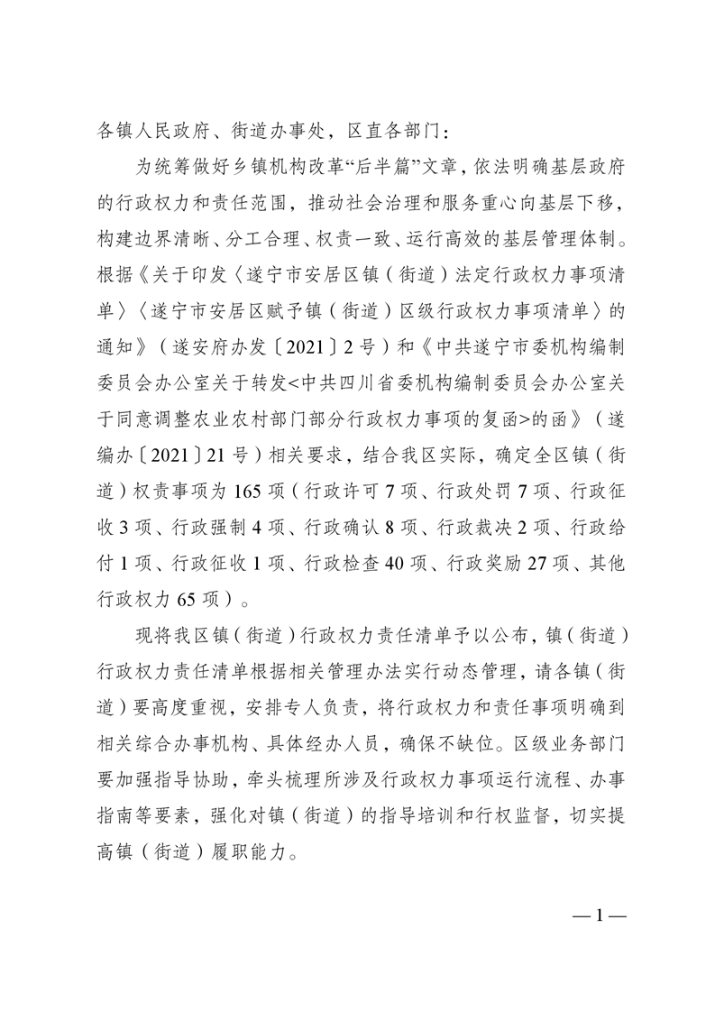 关于印发《遂宁市安居区镇(街道)行政权力责任清单(2021年本)》的通知