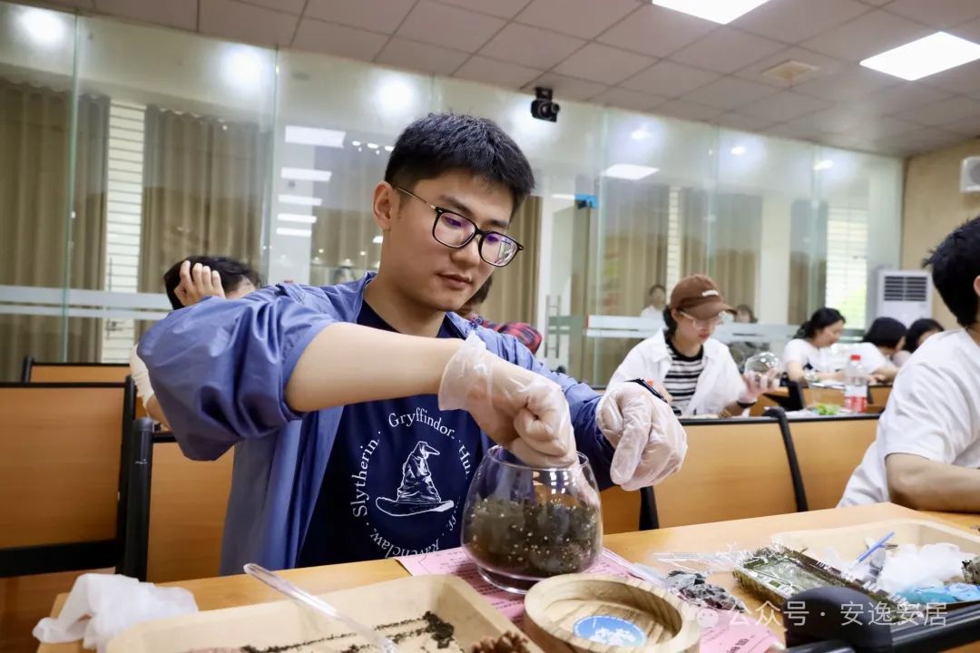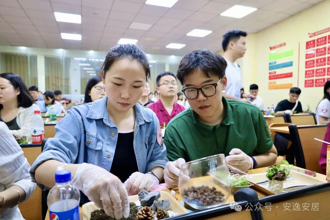 在随后的座谈会上,进行了“弘扬文明新风尚·倡导婚恋新观念”为主题的宣讲。此外,大家还相互配合进行了微景观DIY制作,通过投票选出男女嘉宾好感度前三名,并根据积分获取情况颁发了奖品。