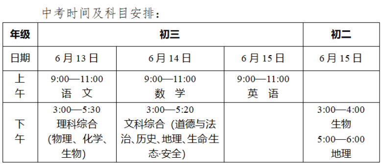(PS:初二年级生物、地理两科进行学业水平考试,成绩记入中考总分,初三中考时不再考试。)