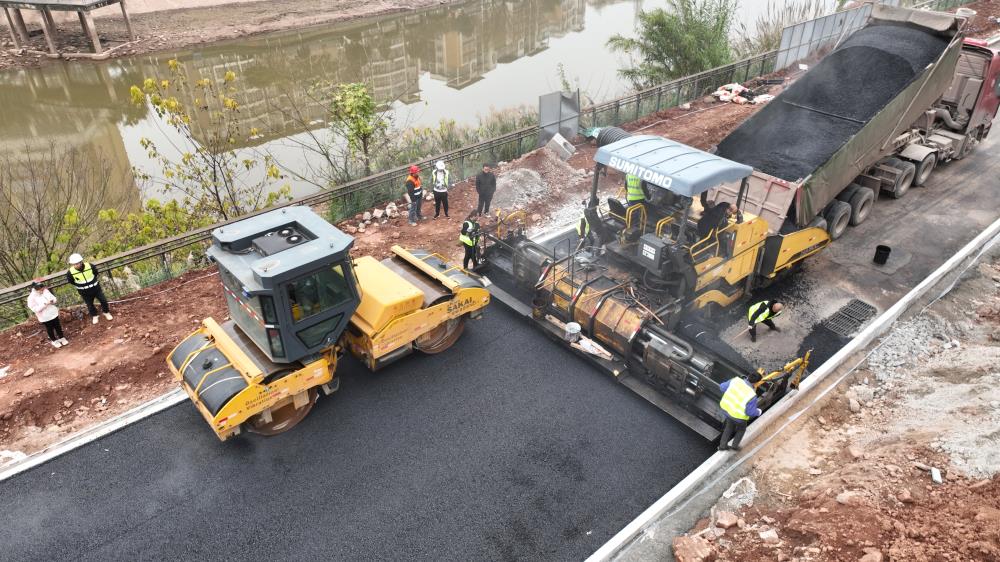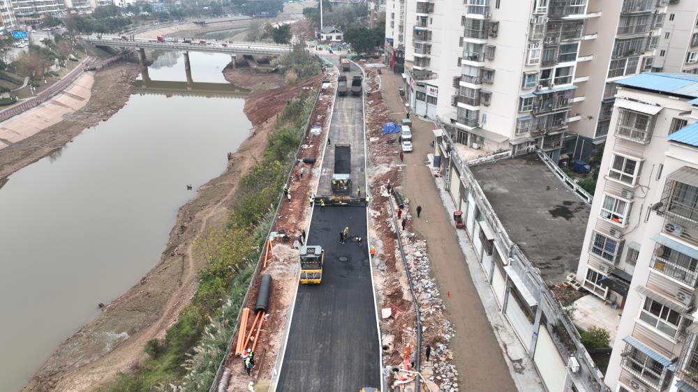 “目前正在进行兴业大桥至琼江桥区域的沥青基层施工,预计全线于春节前道路通车。”项目经理张璐介绍。