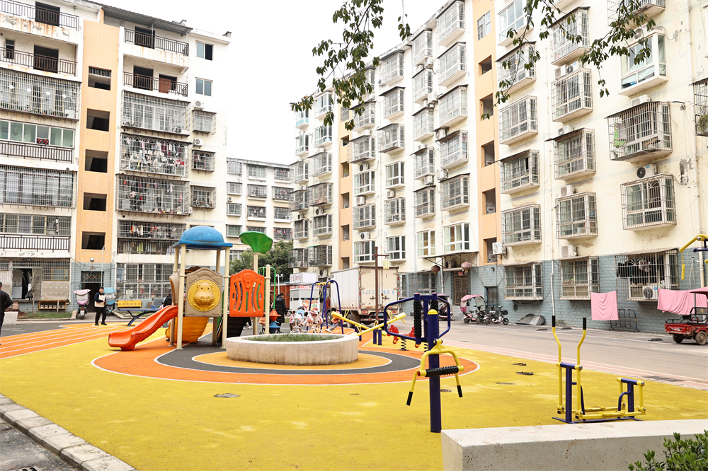 刘敏指着身旁的健身区域感慨道:“自从小区改造后,这块区域就变成了儿童乐园,孩子们常常就在小区里面玩耍,不用特意去外面玩,然后我们平时闲暇的时候还可以打打羽毛球、乒乓球,生活都丰富了。”