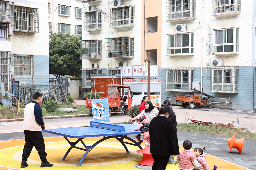 3月19日,记者走进安居区翡翠绿洲小区,平整的路面、有序规划的停车位,生机盎然的绿化带让人眼前一亮。在小区内的户外休闲活动场地,乒乓球台清脆的击打声混着孩童嬉笑传来,居民刘敏正在与家人一起打乒乓球,孩子们在旁边嬉戏玩耍,老人在使用健身器材锻炼,各得其乐。