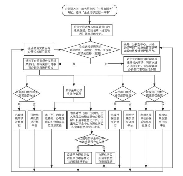 因经营主体住所(经营场所)发生变化的;因经营主体类型 发生变化(如有限公司变更为股份公司、内资公司变更为外资公 司登记等),超越原登记机关地域管辖范围或级别管辖权限的; 或因其他原因需办理迁移的企业,通过迁移平台提交一次申请材 料,即可完成企业迁移登记、税务、公积金、社保、医保相关事 项变更。