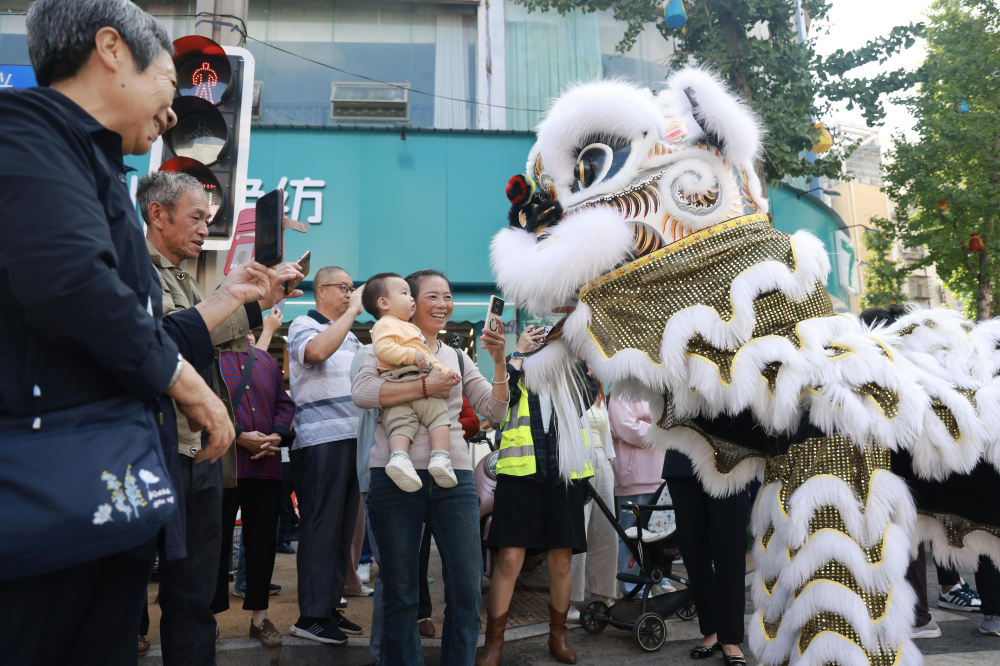 “小朋友很喜欢舞狮子,今天专门带他过来看,很过瘾。表演真的非常精彩,对孩子来说也是一次很棒的艺术启蒙。”戚女士跟巡游狮子互动后高兴地说道。