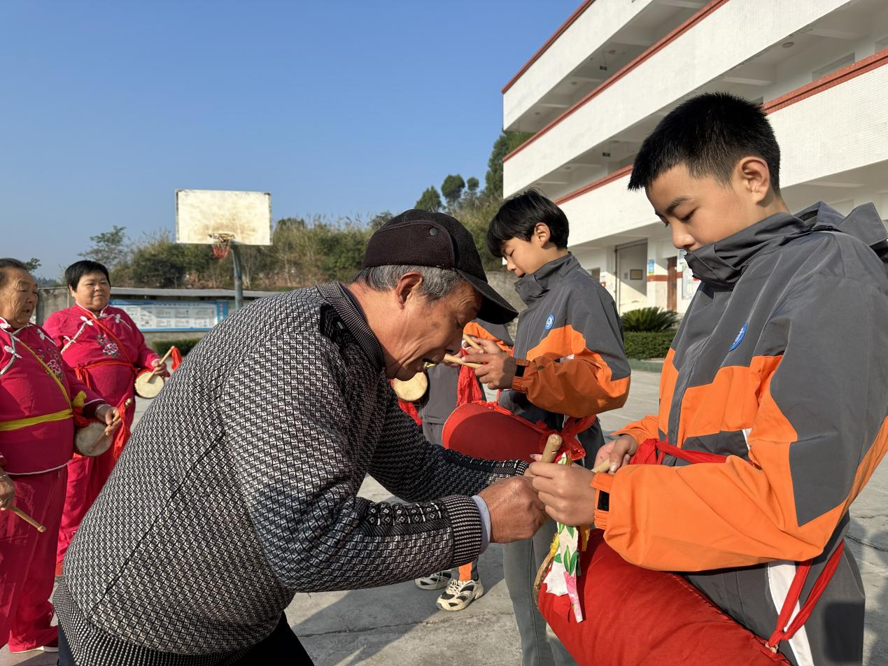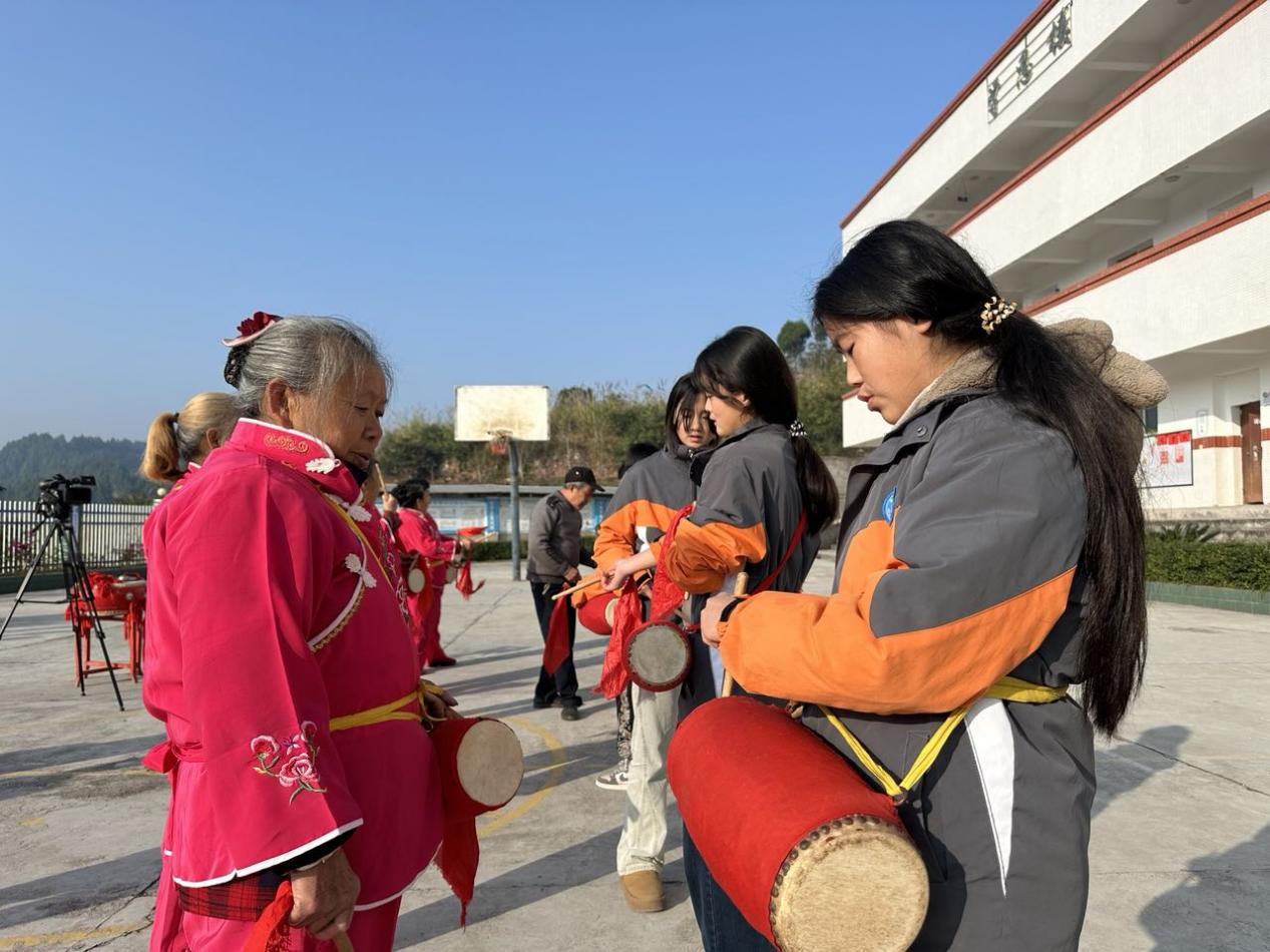 “咚咚咚……”周六一早,白马镇步云九义校的操场上锣鼓喧天,学校邀请的本地特色腰鼓队正手把手地教授假期留守寄宿学生腰鼓基本动作要领,同学们学得十分认真,对声乐方面非常感兴趣的陈茉冉就是其中之一。