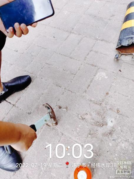 日前,我局工作人员巡查中发现,滨江南路道路安装的挡车杆有缺失,松动移位等情况,该路段又位于城区集中区域,来往行人及车辆较多,如果行人及车辆不小心碰到螺丝钉上,易造成安全事故。为排除安全隐患,我局工作人员立即找来套筒扳手、铁锤等工具,并两人相互协作,将一个一个凸起的钉子拔起来,经过3小时的努力,终于把100多颗螺丝钉全部拔了下来,为市民的安全出行做好服务保障。