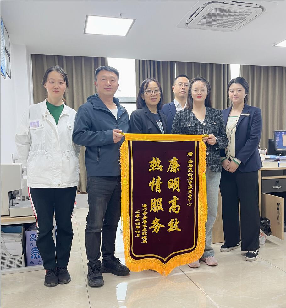 4月8日,遂宁市安居生态环境局的谭先生向市公共资源交易中心安居区分中心送来了一面写有“廉明高效、热情服务”的锦旗,为工作人员热情高效服务“点赞”。