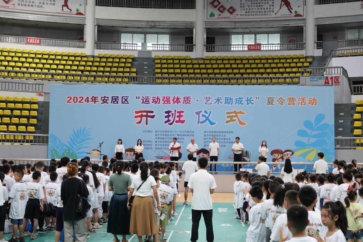 为进一步丰富广大青少年学生暑期学习生活,引导青少年学生加强体育锻炼,陶冶艺术情操,促进全面发展。7月3日,安居区关工委、区教育体育局、区文广旅游局、区总工会、团区委、区妇联联合举办的2024年“运动强体质·艺术助成长”夏令营在区体育中心开班。