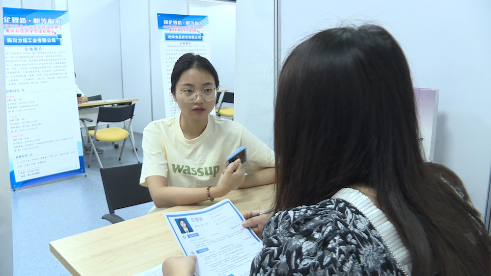 招聘会现场,人头攒动。就读于重庆科技大学化学专业的孙贵云临近毕业,正在寻找就业机会,“今天的招聘会工作种类很多,我投了3家有意向企业,希望后续能得到确切的答复。”