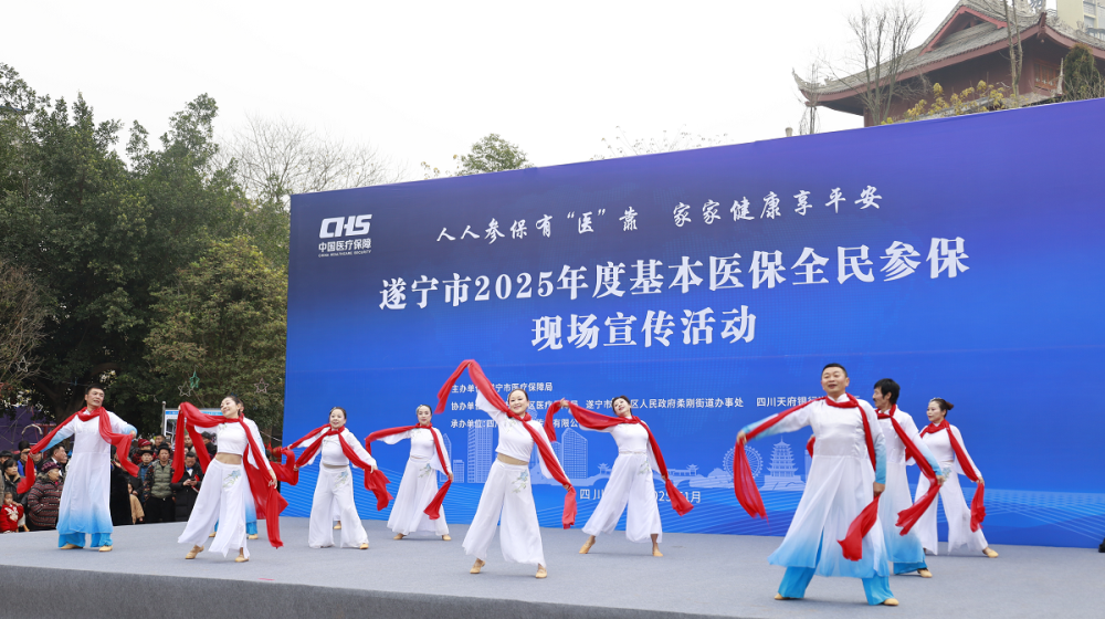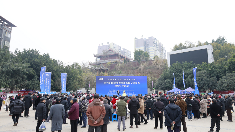 做好城乡居民医保缴费工作,是保障群众病有所医、老有所养等基本权益的重要举措。1月15日,由市医保局主办,安居区医保局、柔刚街道协办的“人人参保有医靠 家家幸福享平安”2025年度基本医保全民参保现场宣传活动在头陀寺广场举行,通过文艺演出、有奖问答、现场咨询等方式广泛宣传医保政策,营造“人人参保”的浓厚氛围。