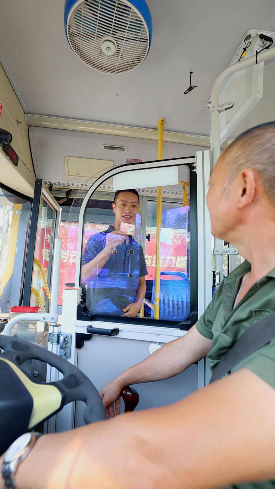“持优待证可以免费乘车,请往里走。”