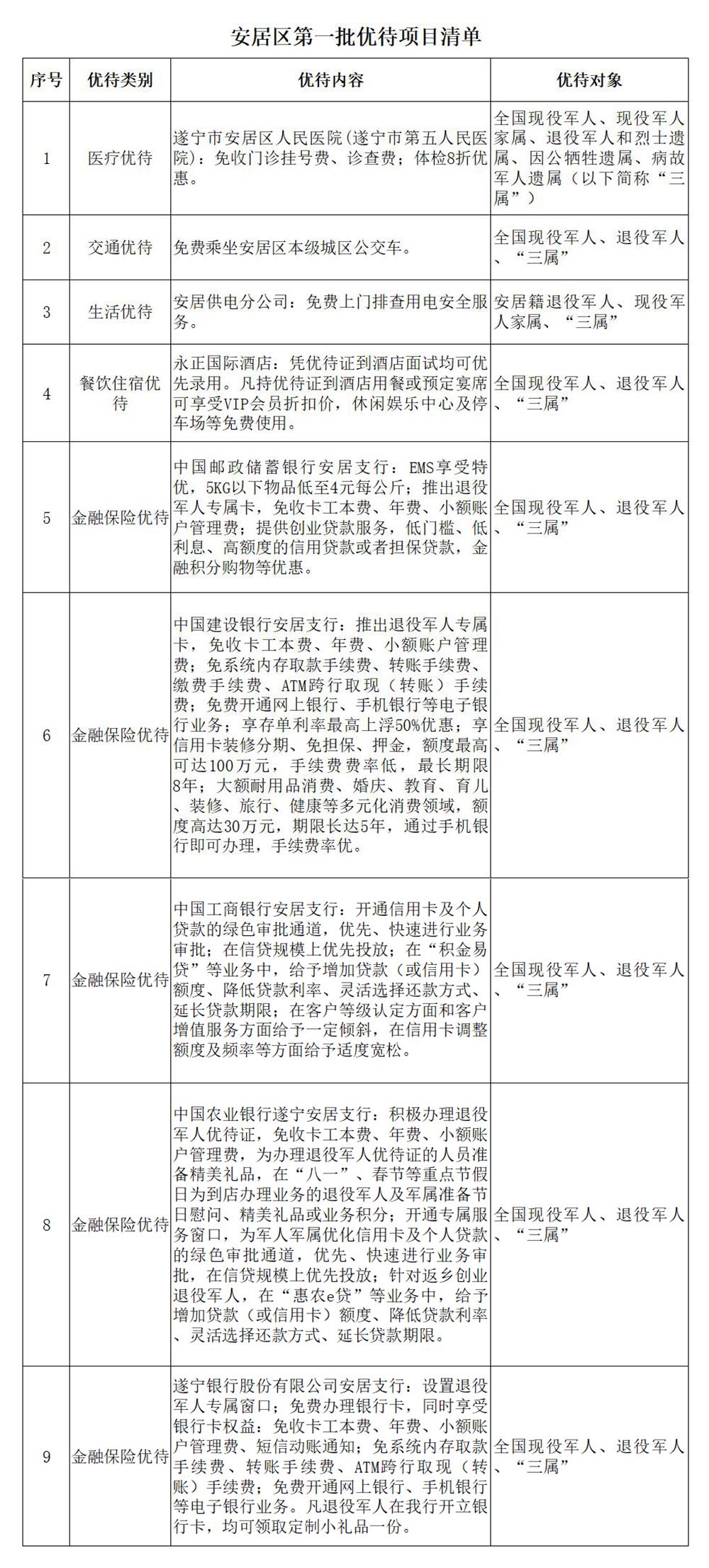 为大力弘扬“拥军优属 拥政爱民”的光荣传统,不断凝聚社会资源、营造浓厚双拥氛围,2023年5月,安居区实施了现役军人、退役军人和其他优抚对象持有效证件免费乘坐城区全线路公交车政策。