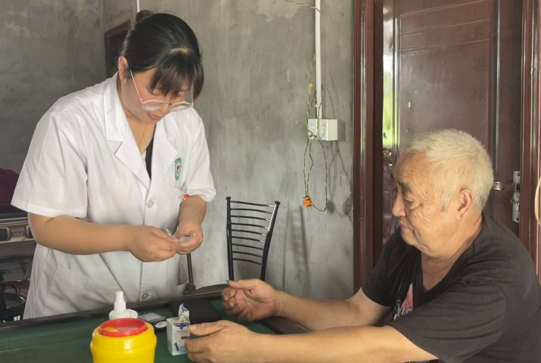 家住白马镇陈家沟村的许婆婆,今年77岁,去年初在家摔倒,导致身体左侧瘫痪,生活就医不方便。为此,医生上门为许婆婆开展了B超、心电图、血糖、血压等基础检查,并根据检查结果做了用药指导和健康知识科普宣教。