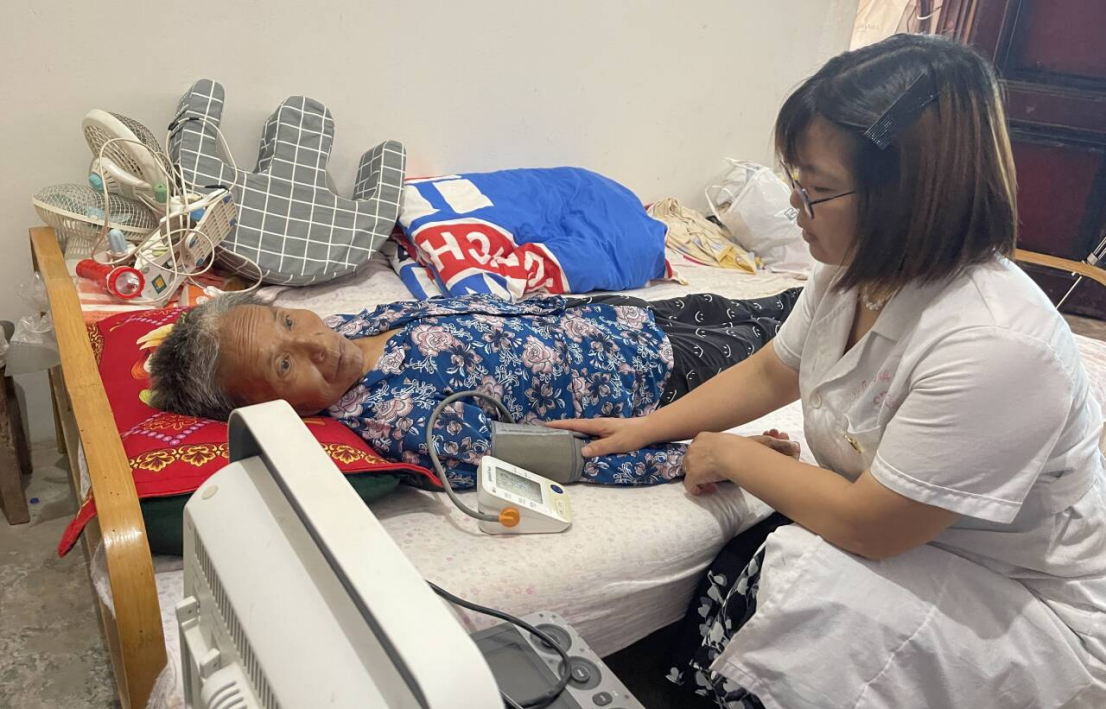 “平时可以做一些基础的按摩,有助于康复,经常帮她翻身,防止长褥疮。”在白马镇,医护人员们正在走村入户为失能老人做检查。
