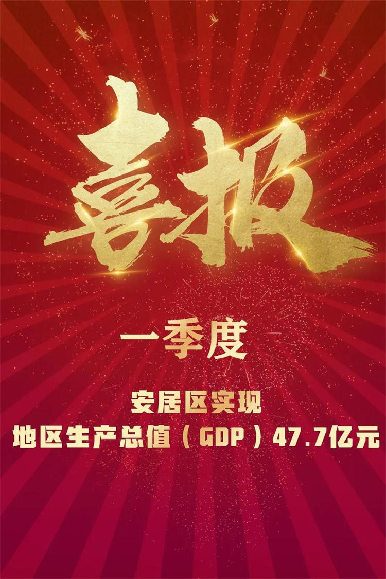 今年一季度,安居上下深入贯彻落实中央、省委、市各项决策部署,全区统筹推进疫情防控和经济社会发展的成效持续显现,各项指标继续保持恢复性增长,一季度经济实现良好开局,实现地区生产总值(GDP)47.7亿元,按可比价格计算,同比增长17.3%,两年平均增长6.8%。